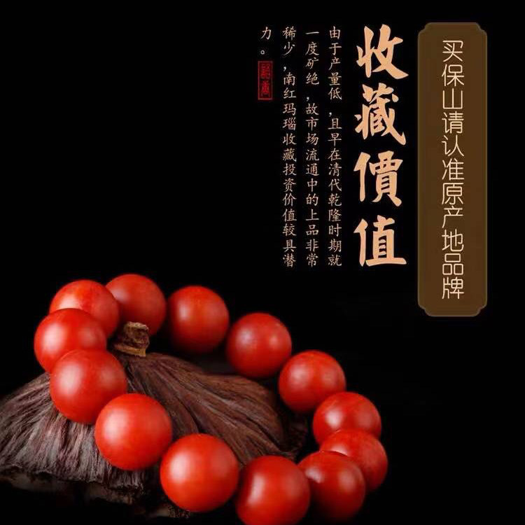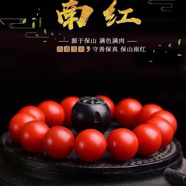 雲南保山南紅手串瑪瑙ブレスレット天然正統宝山仏珠柿紅輪満肉男女モデル