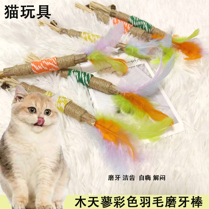猫のおもちゃのアップグレード版の木の天のタデのカラーの羽の歯磨きの棒は猫の棒を笑わせます。