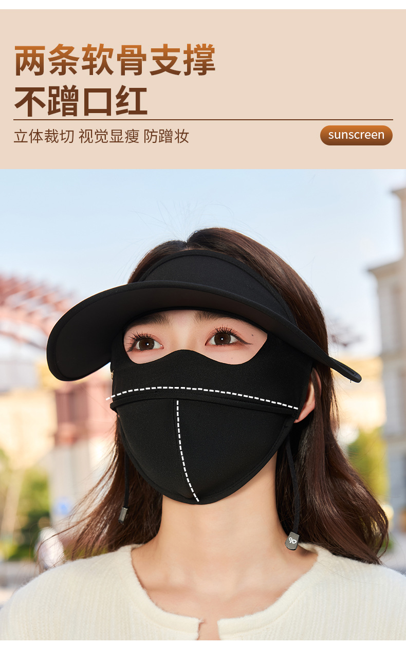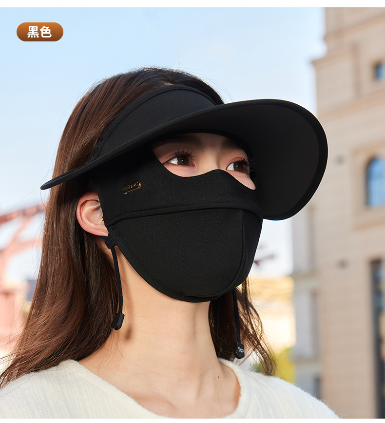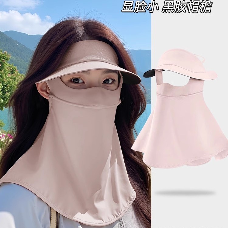 顔全体を覆う日焼け止めマスク、女性用、夏の新作、黒のゴム製つば付き、紫外線防止、薄いアイスシルクマスク、フェイスマスク