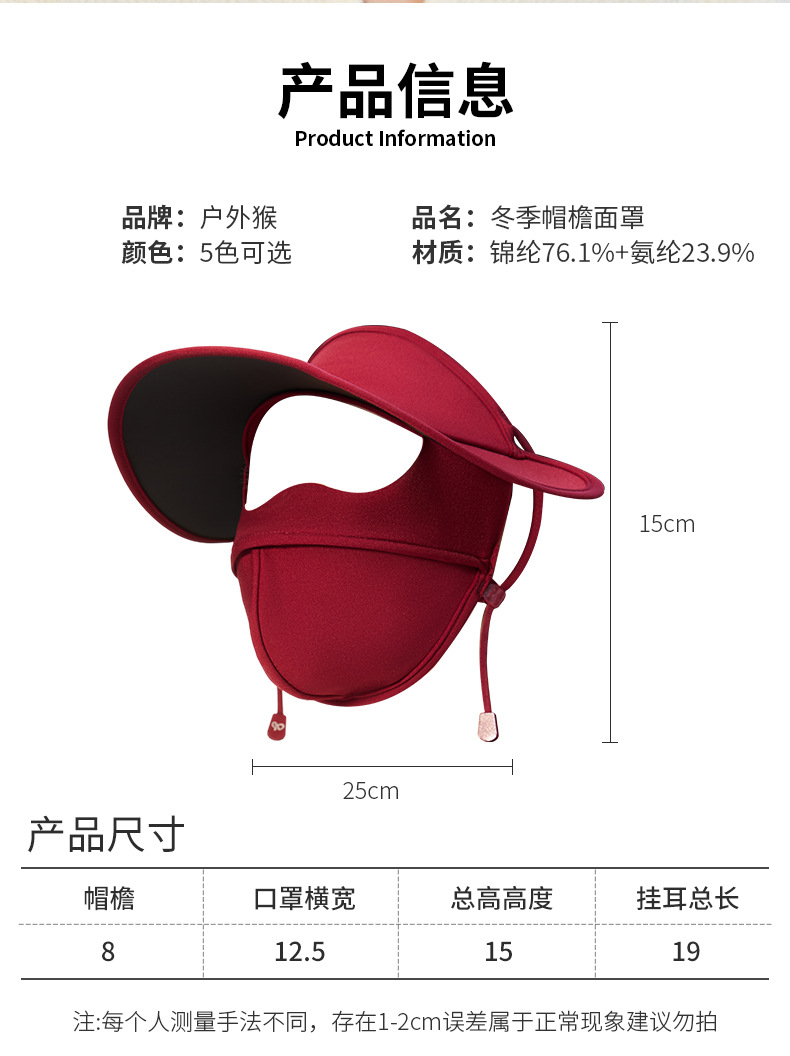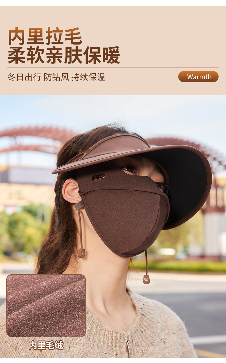 冬の日焼け止めマスク紫外線防止つば付きヒアルロン酸保護顔防風防寒ベルベット保温マスク