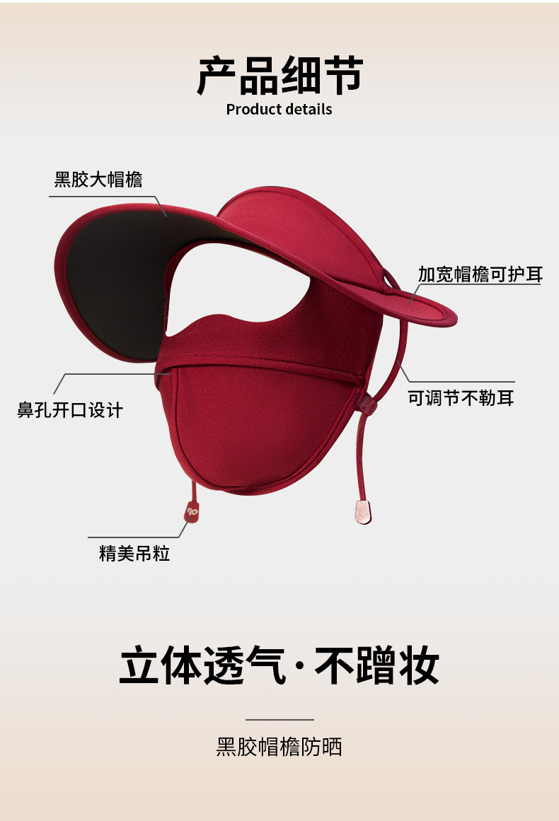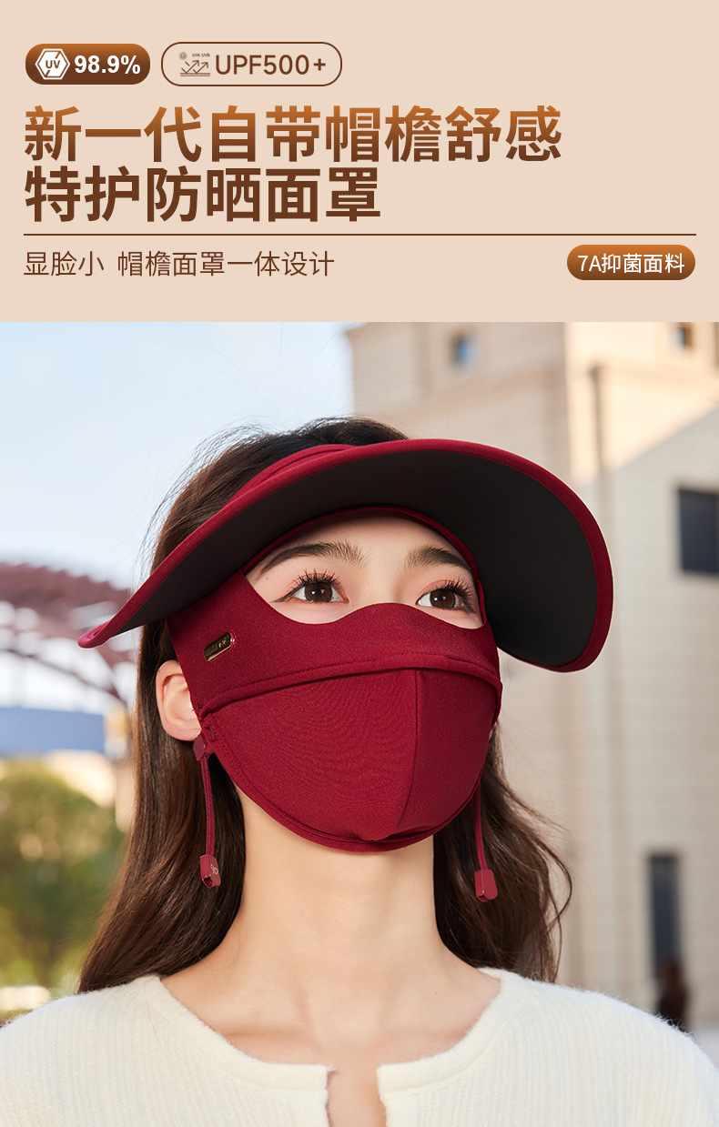 アンダーフォーカス日焼け止めマスク、フルフェイスマスク、一体型抗UV屋外通気性サンシェードフェイスマスク、大きなつば