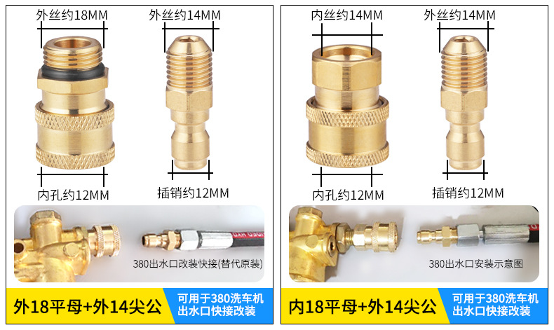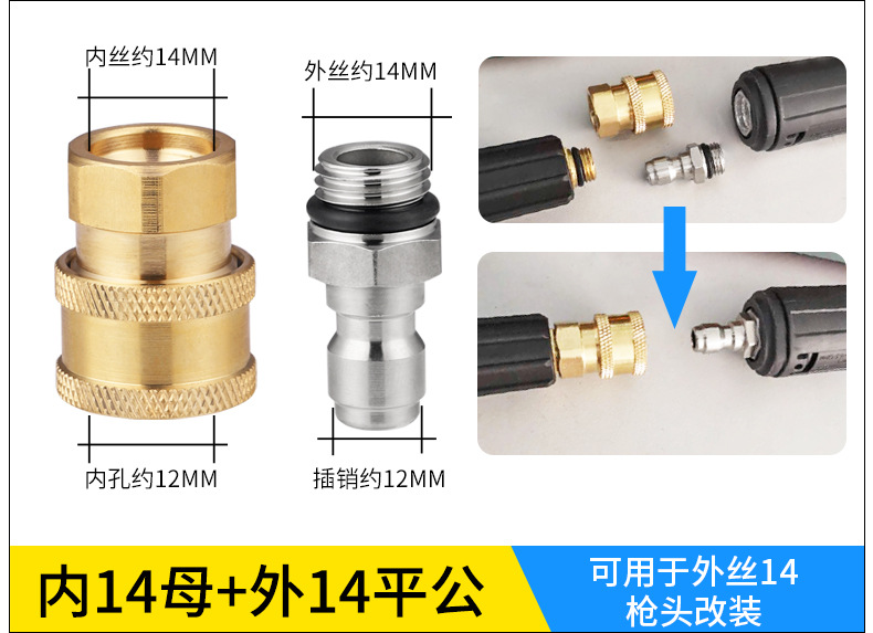 高圧洗車機水鉄砲1/4クイックジョイント280/380洗浄機部品泡ポット変換内外糸14