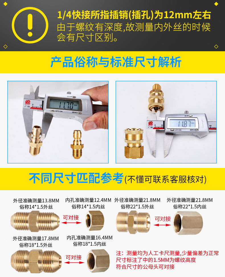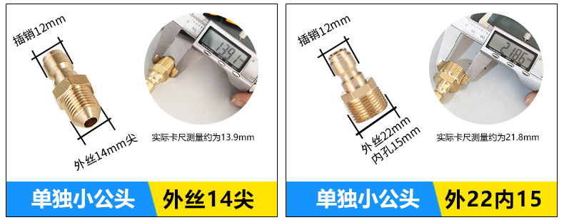 全铜 高压清洗机快速接头 22*1.5家用高压水枪洗车出水嘴快接铜配