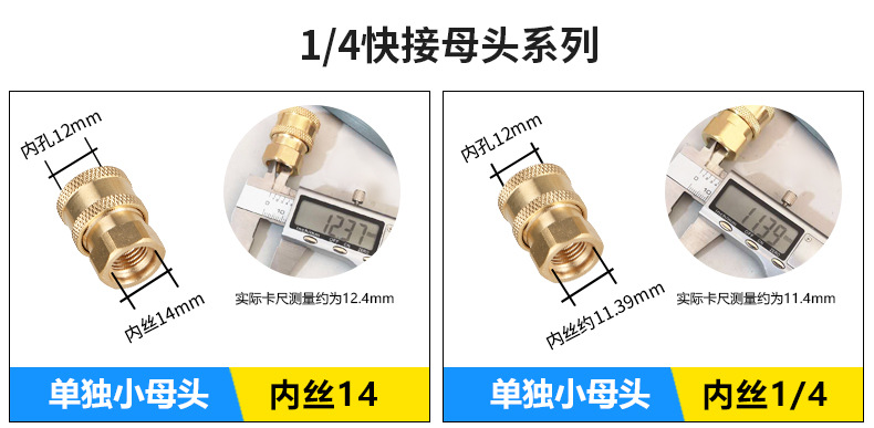 1/4快速接头高压清洗机洗车水枪2分322M14内丝螺纹母接头活接12孔