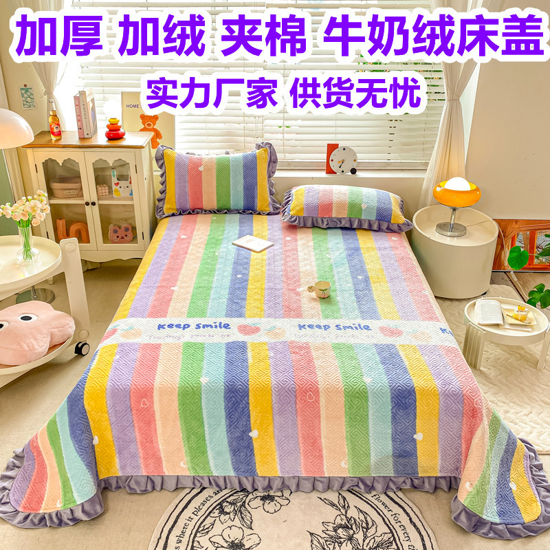 冬の厚手のミルクのフランネルのレースのベッドのカバーの3つのセットの単品は綿とフランネルのベッドのカバーの畳のシーツを挟んで卸売りします。