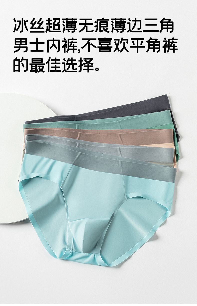 新款男士冰丝撞色内裤7A抑菌裆柔软亲肤舒适透气弹力三角裤男现货