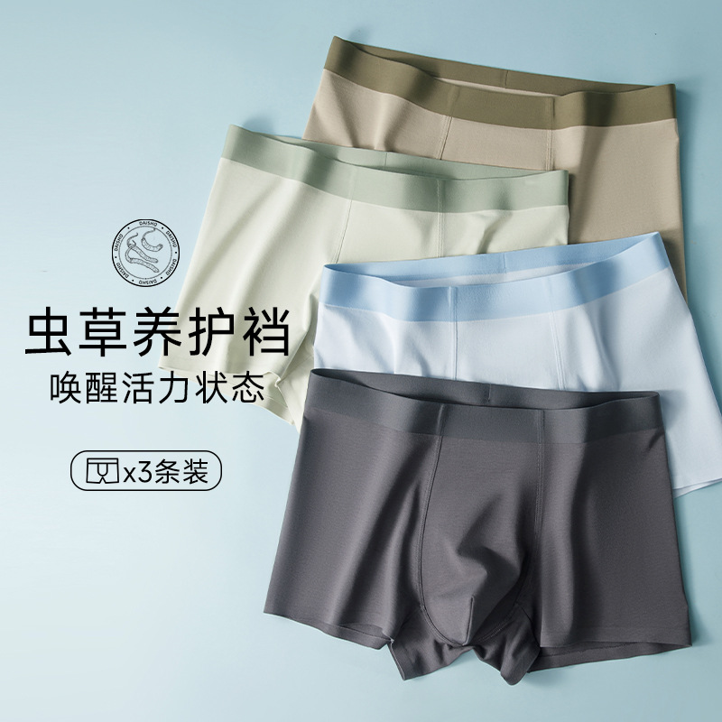 男士内裤夏季透气平角裤虫草养护裆舒适透气新款