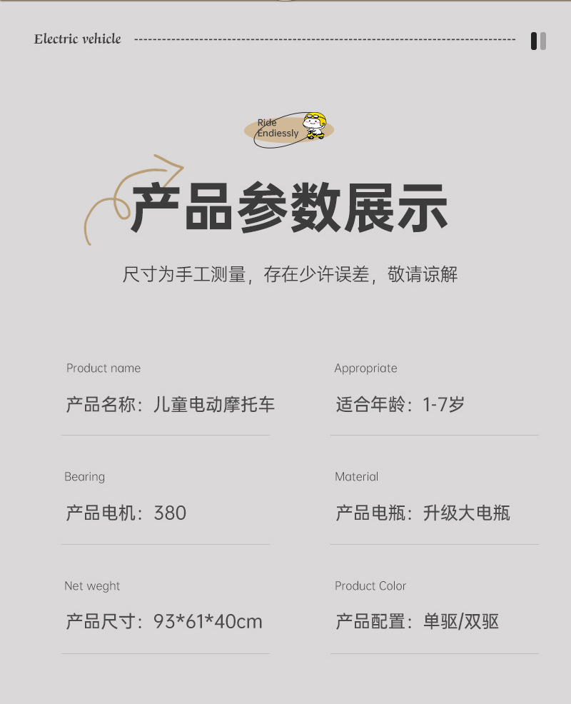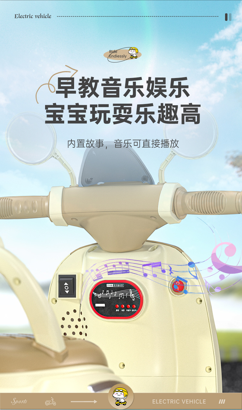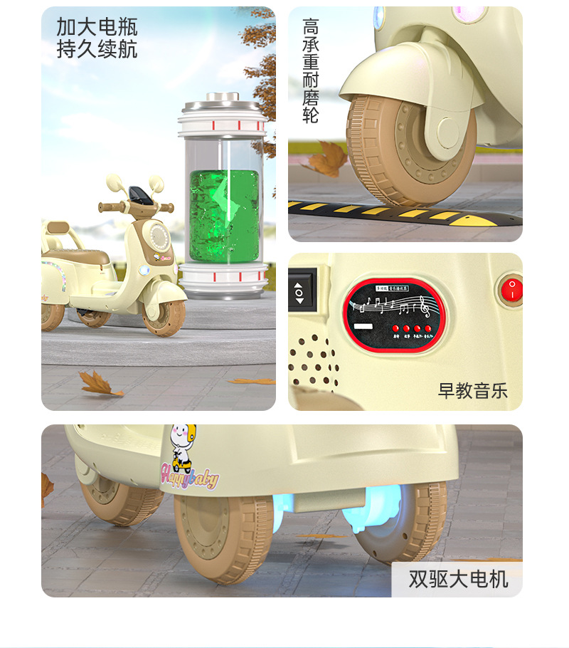 新型子供用電動オートバイの大型バッテリー充電玩具車の電動三輪車は1-4歳で人に乗ることができます。