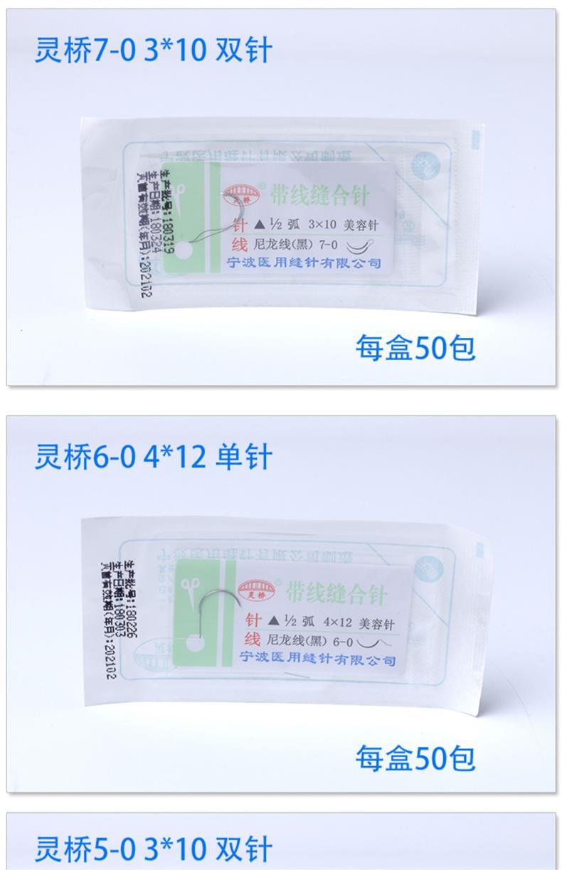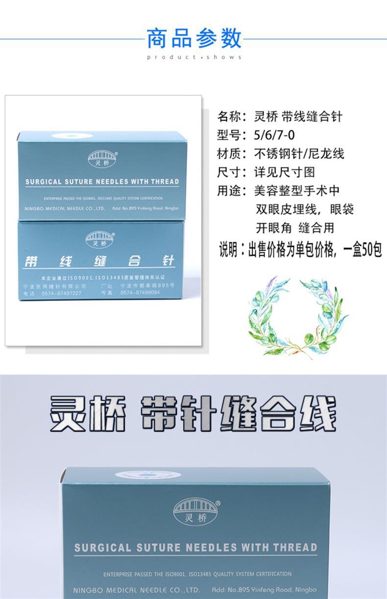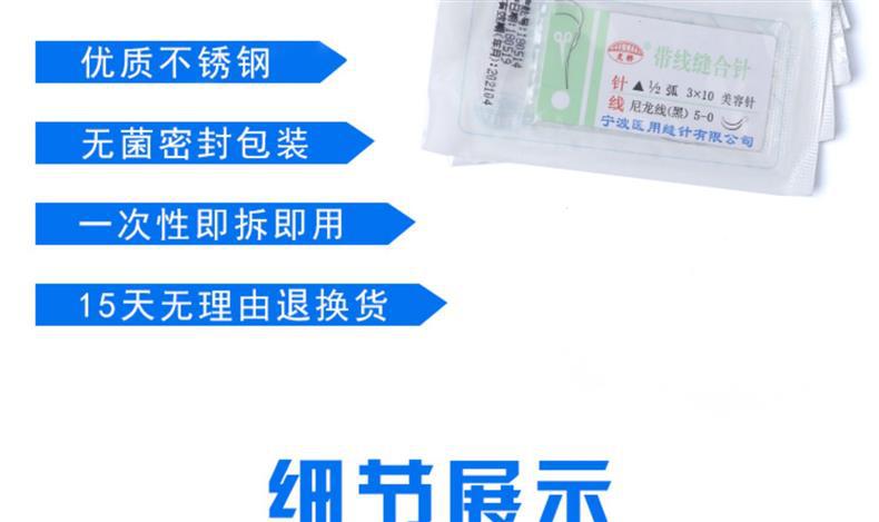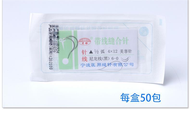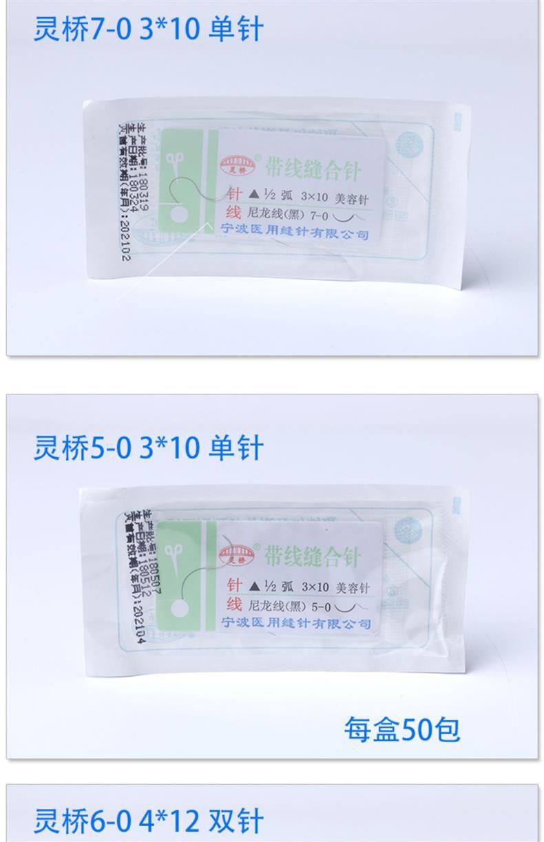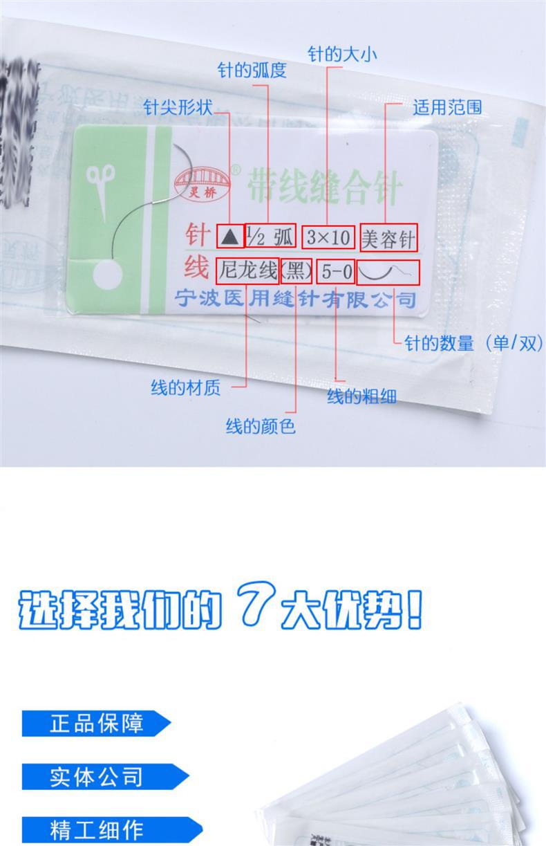 寧波霊橋帯線縫合針美容埋線角針二重まぶた縫合線二重針ナイロン糸7/6-0