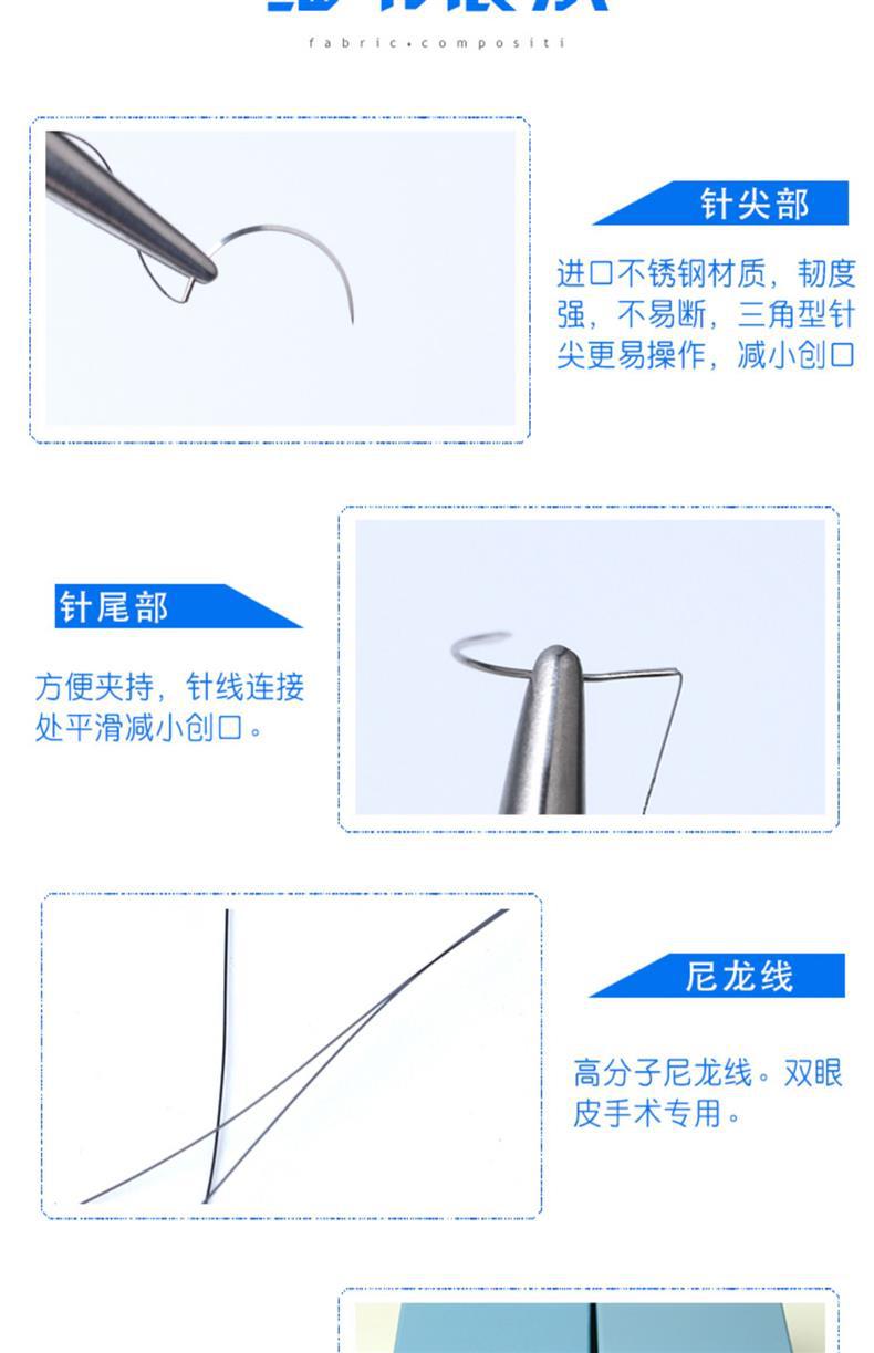 成和线带针缝合线做双眼皮手术美容整形外科医用非吸收带线缝合针