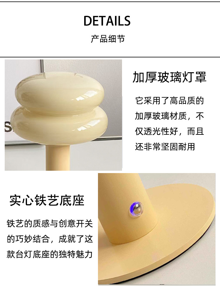 メーカー直販越境新品ガラスキノコ充電小夜灯insデスクトップ置物装飾灯夜灯