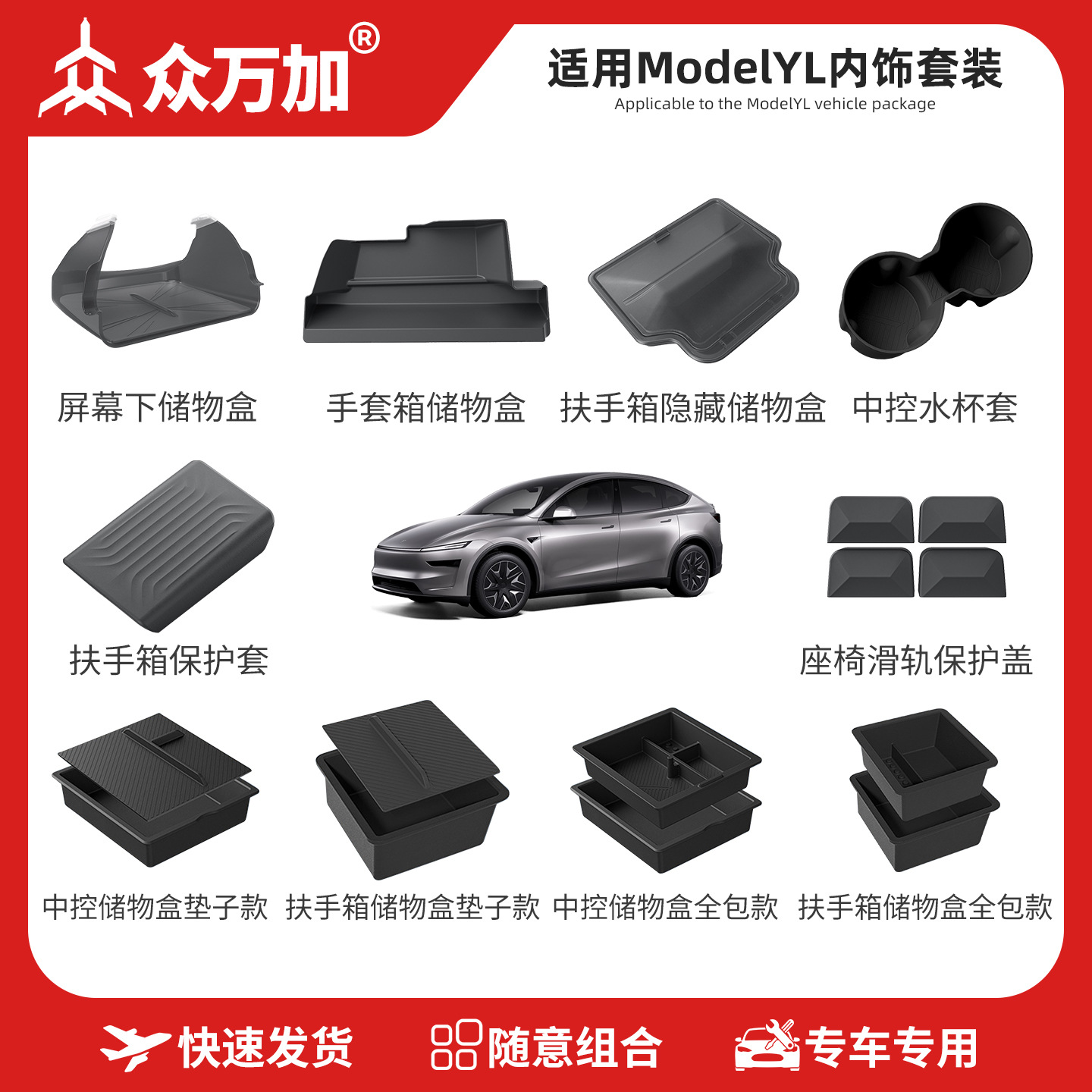 适用于特斯拉ModelYL中控储物盒屏幕下置物盒扶手箱套焕新Y3内饰