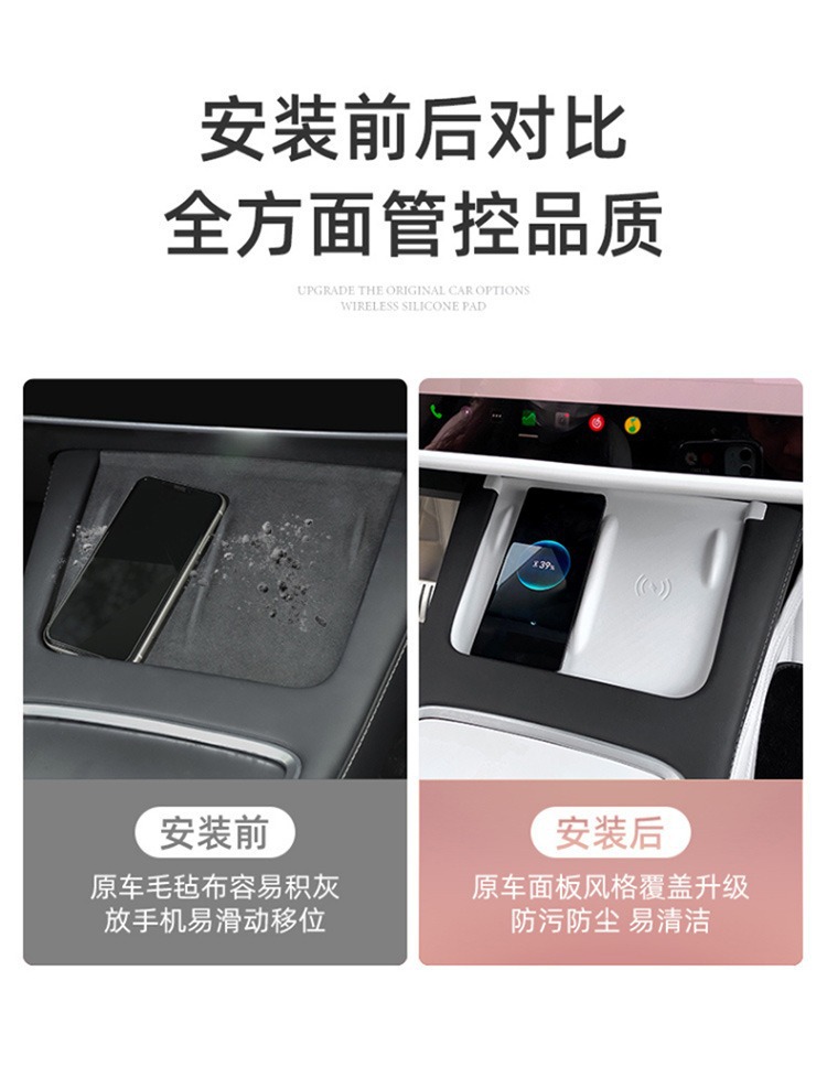 テスラmodely/3中制御無線充電シリコンマット滑り止めマット車内装飾を適用して組み立てた