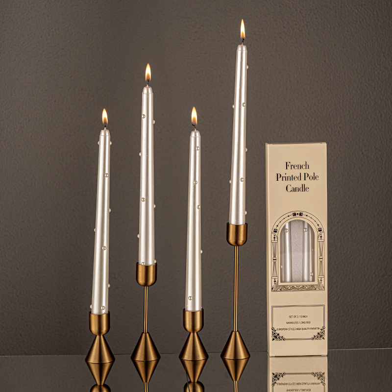 25cm珍珠长杆酒店蜡烛氛围感桌面摆件欧式浪漫无烟烛光晚餐蜡烛