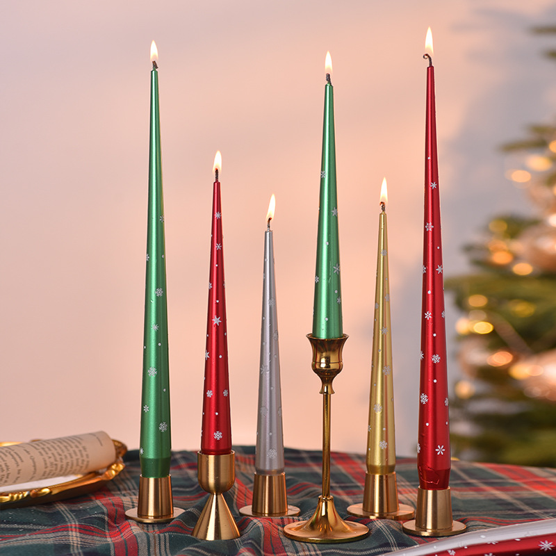 23cm雪花尖锥蜡烛DIY雪花贴纸家居装饰蜡烛圣诞烛光晚餐尖锥蜡烛