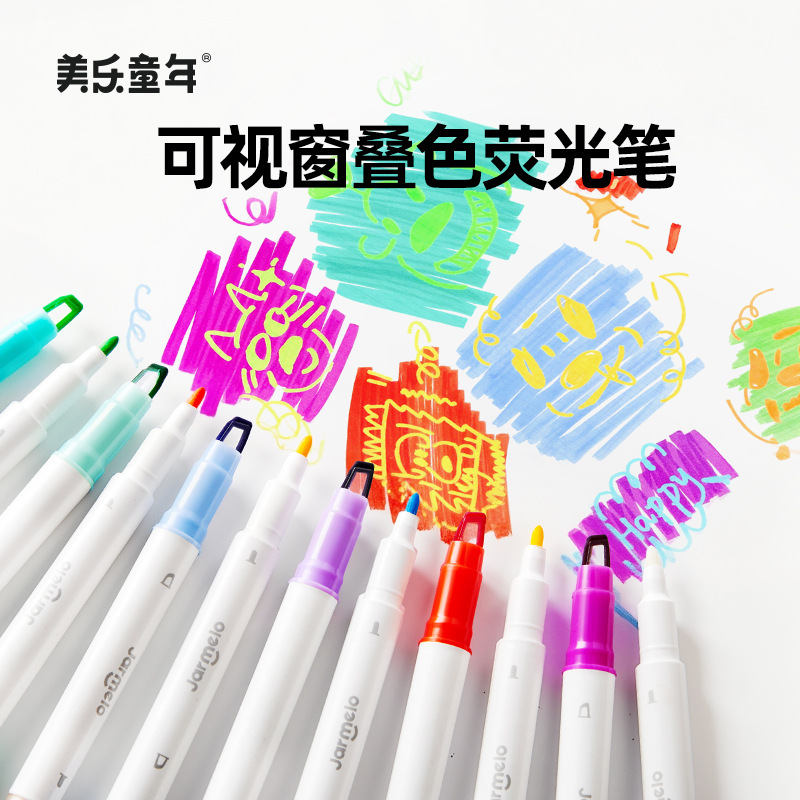 美乐童年变变荧光笔彩色划重点小学生专用初中生标记笔大容量可擦