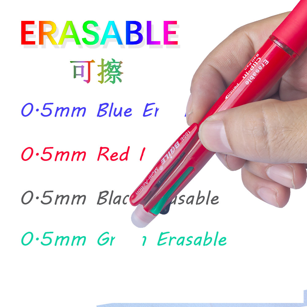 3合1多色押し拭きペン0.5mm赤黒青三色熱拭き多色中性ペン多色ペン卸売り