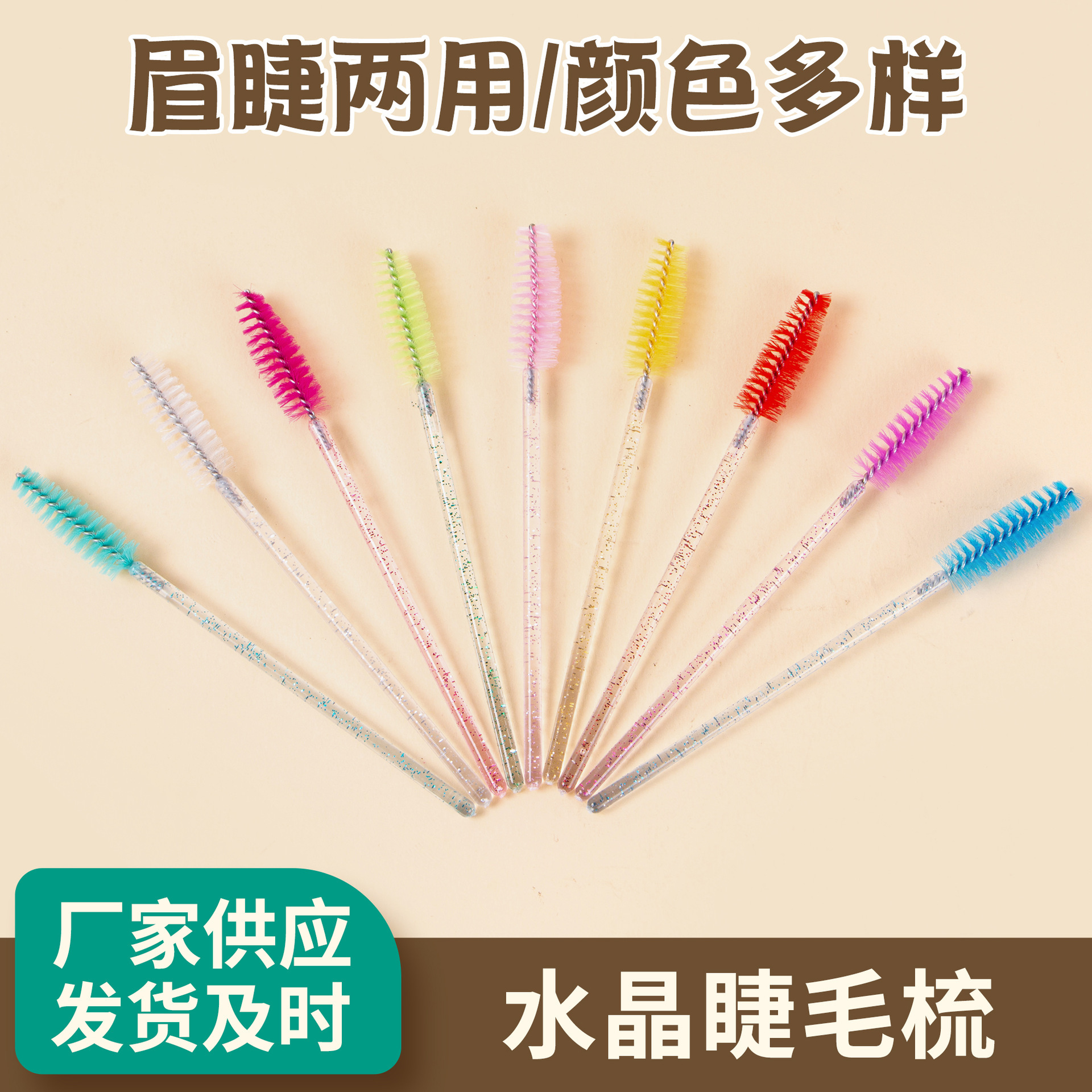 新品50本入水晶中実まつげ両用まつげブラシ接ぎ木携帯カラー美化粧道具まつげ櫛