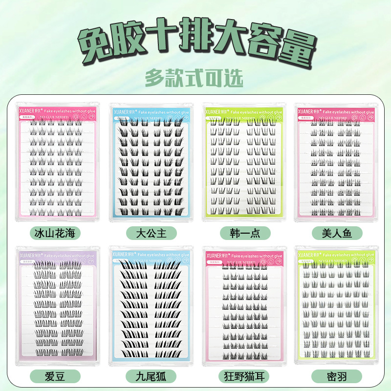 Xuaner クロスボーダー 10 行大容量怠惰な接着剤不使用のつけまつげ家族の肖像画ナチュラルまつげ自己接着剤不使用のつけまつげ