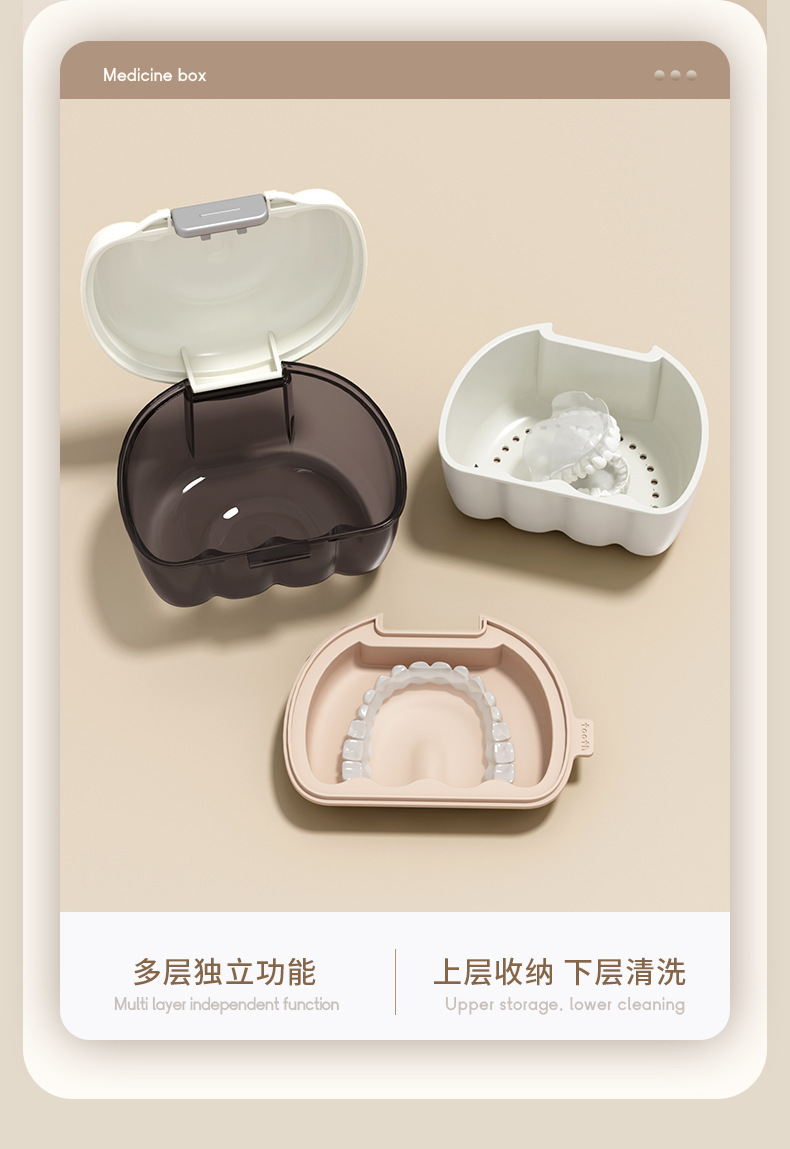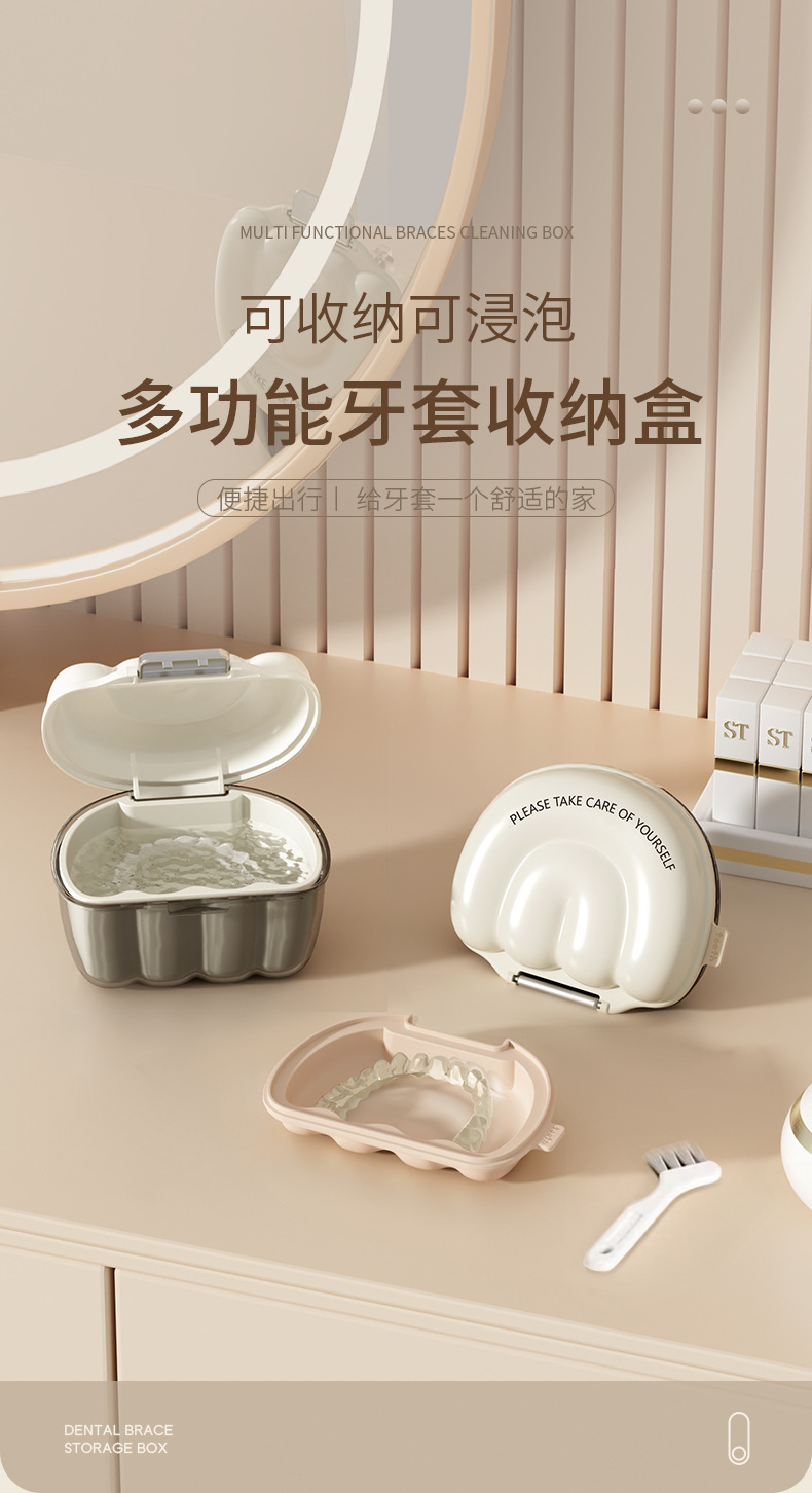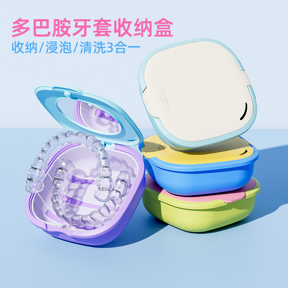 多巴胺牙套盒便携式假牙清洗器密封防漏水儿童食品级收纳盒子储物