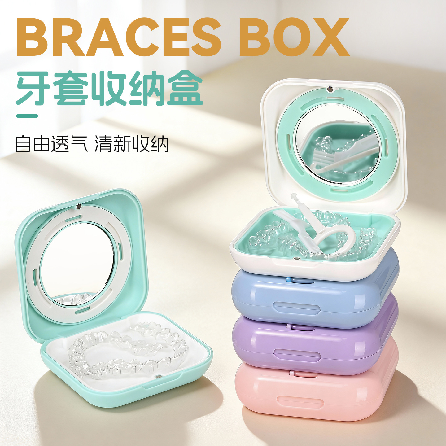 便携牙套收纳盒多巴胺带镜子牙套盒隐形牙套假牙正畸矫正器收纳盒