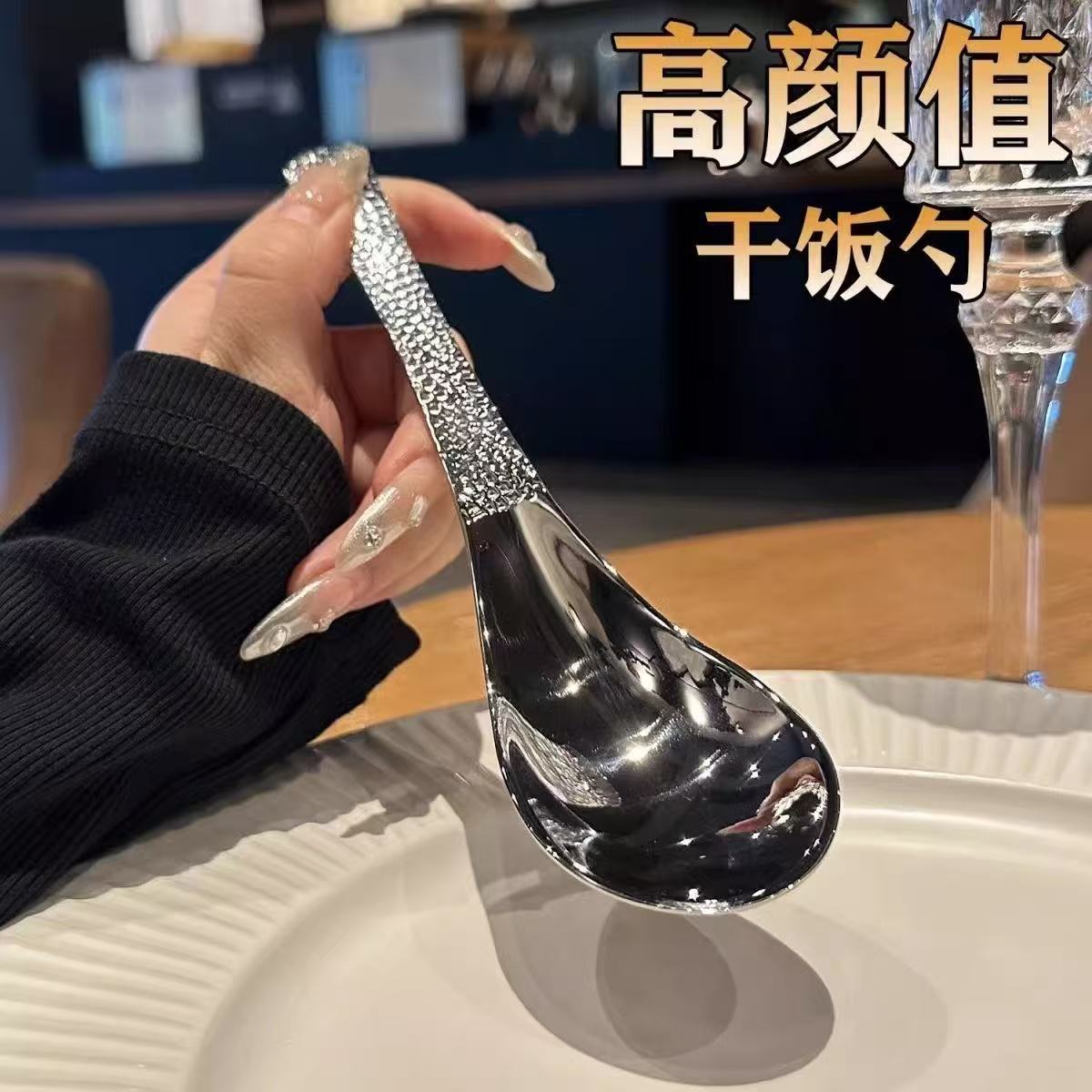 レトロハンマーポイントスプーンステンレスハンマースプーン家庭用厚いスプーン子供の食事スプーン高颜値デザートスプーン