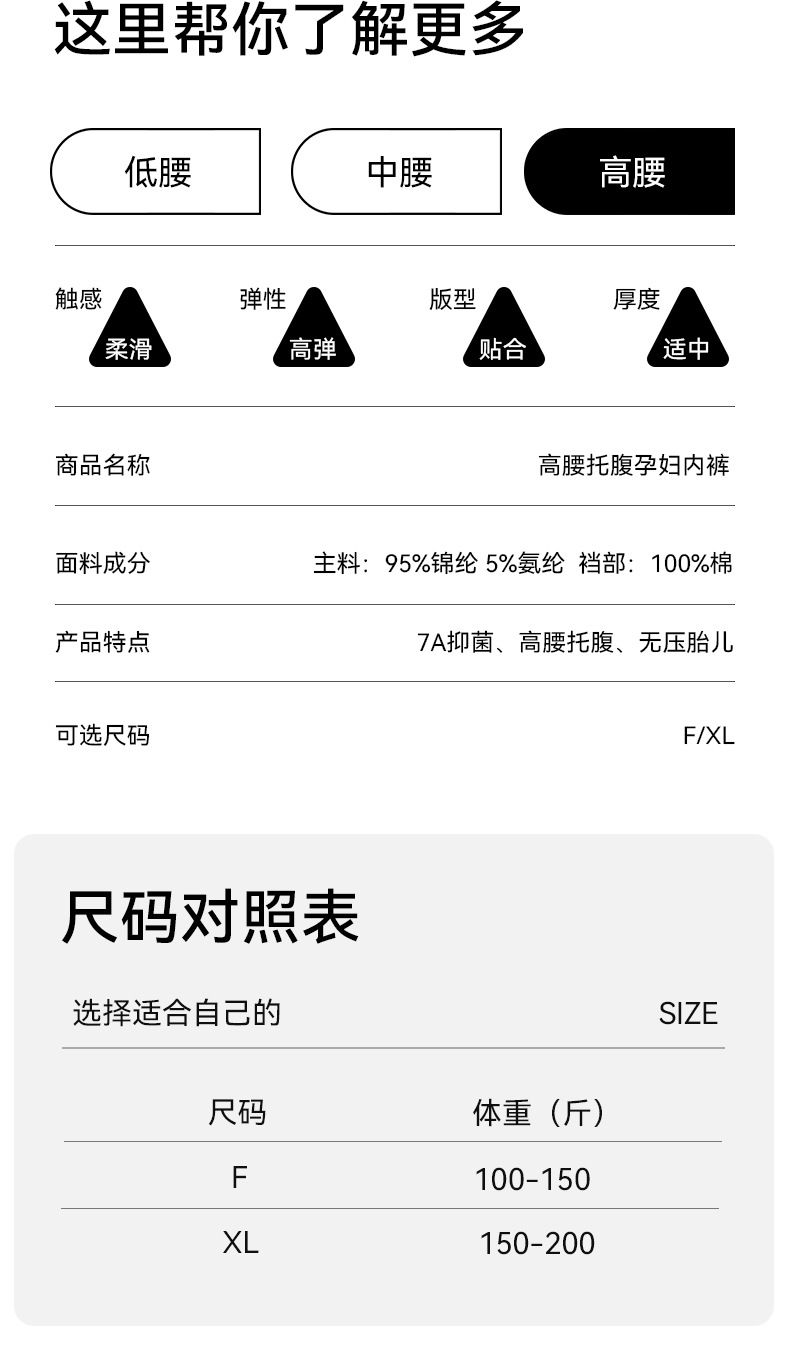 大きいサイズの妊婦の下着は腰が高くて腹を支えます。