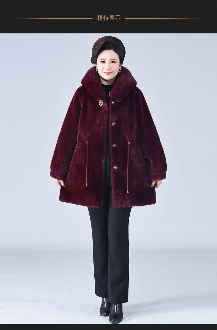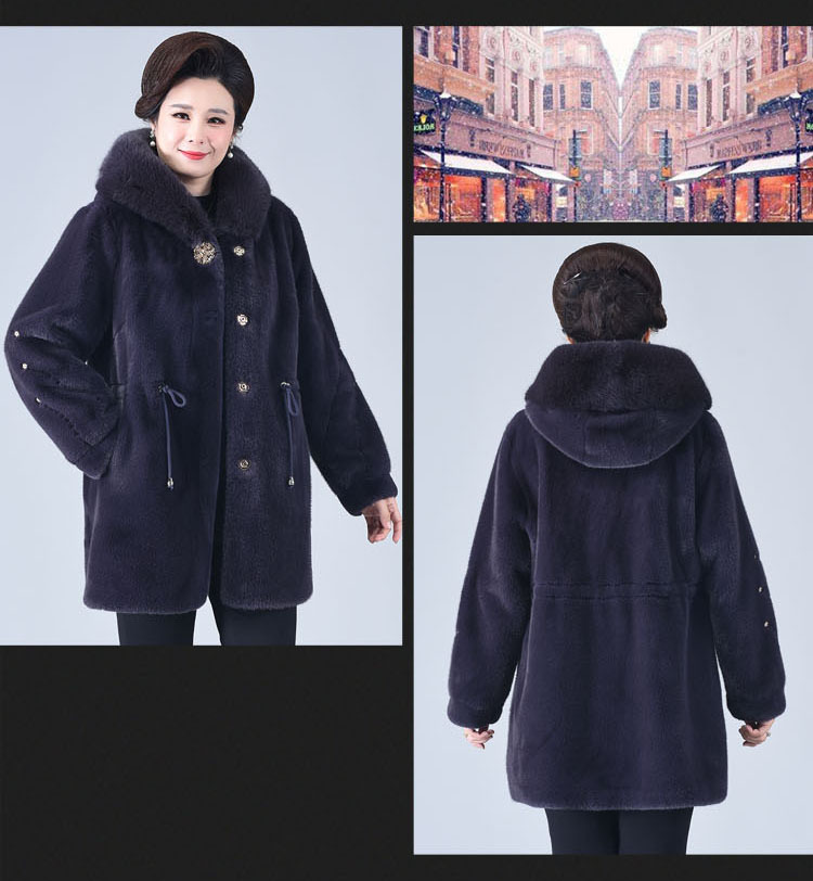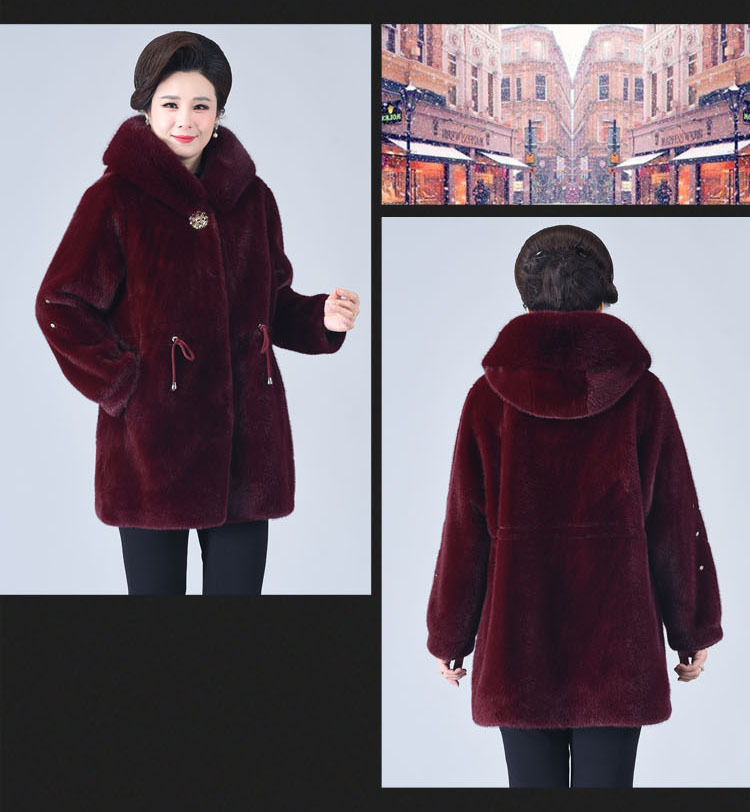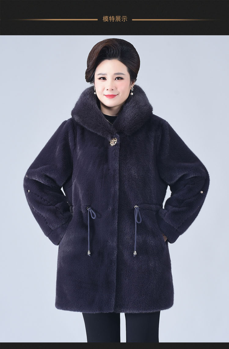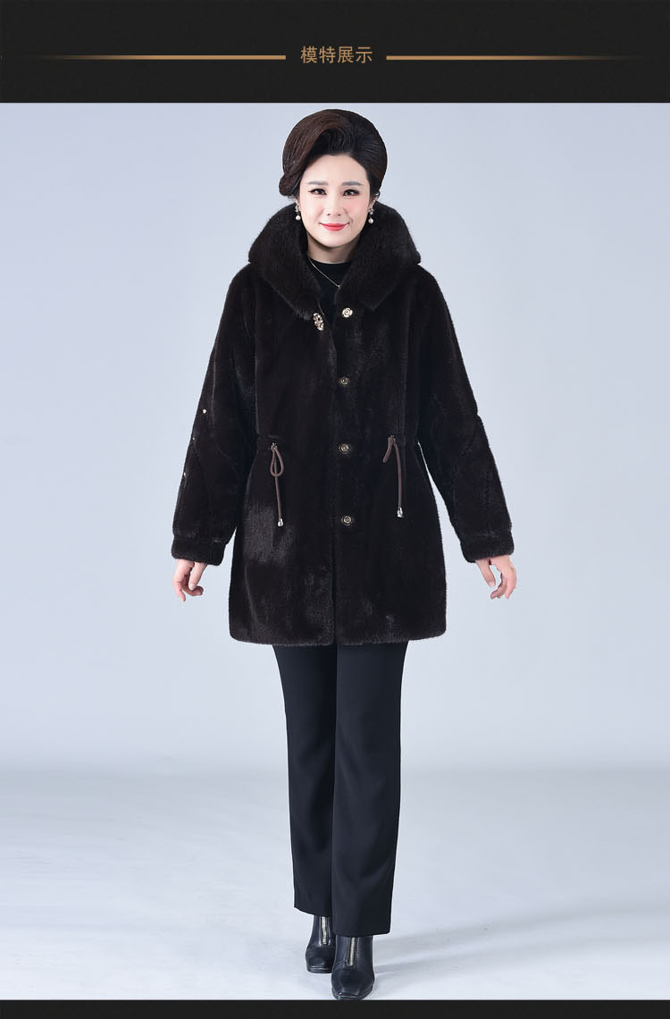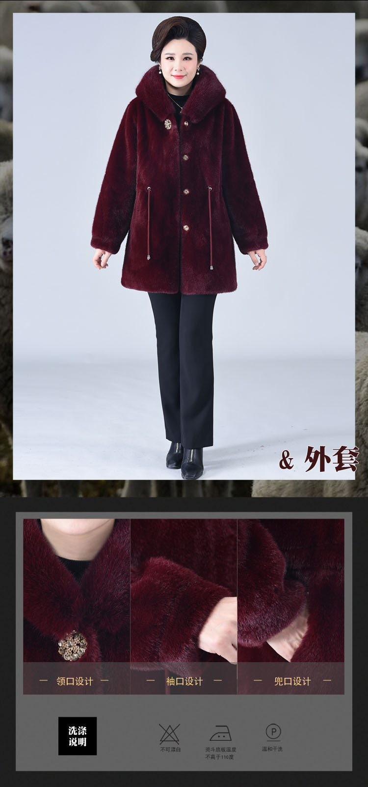 新型ママ秋冬コート高貴毛皮一体コート中高年女装秋冬フード付き200斤