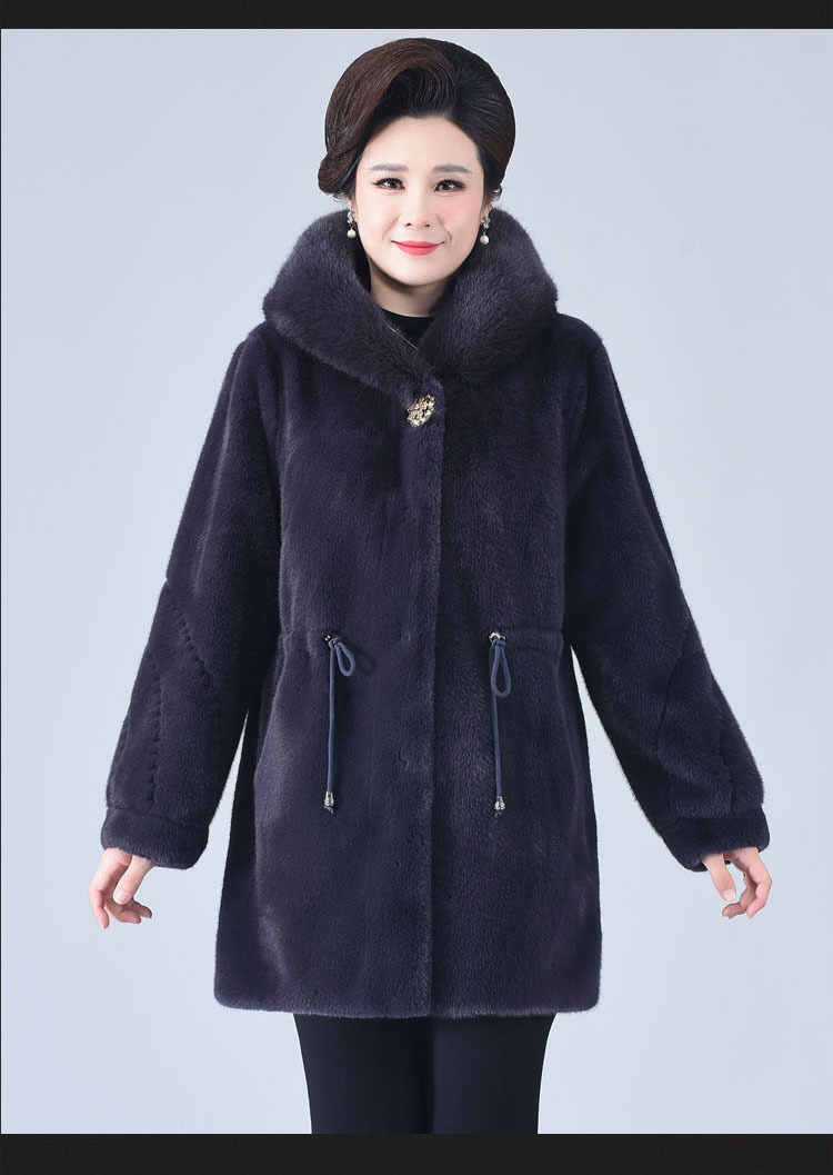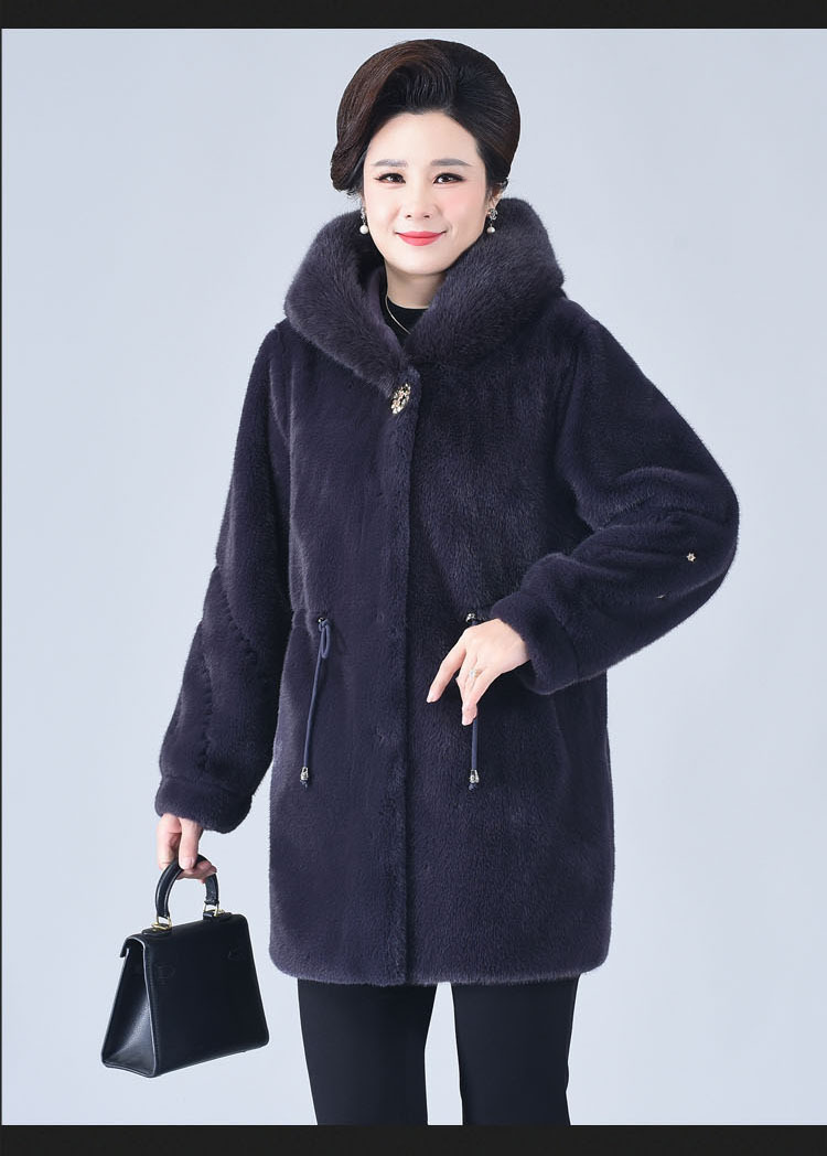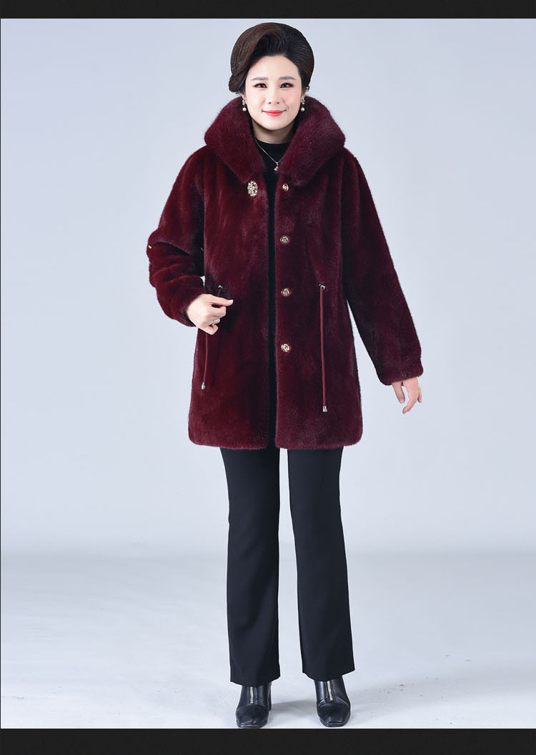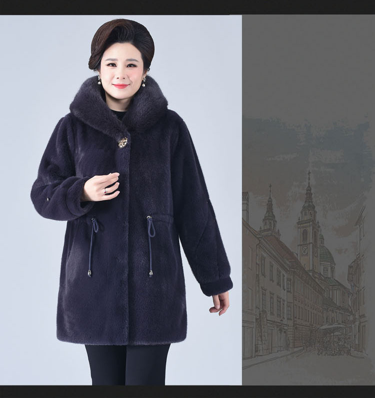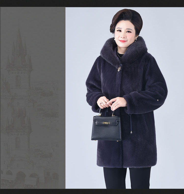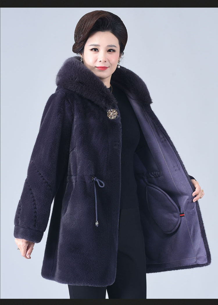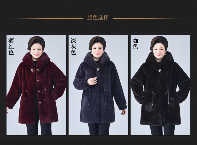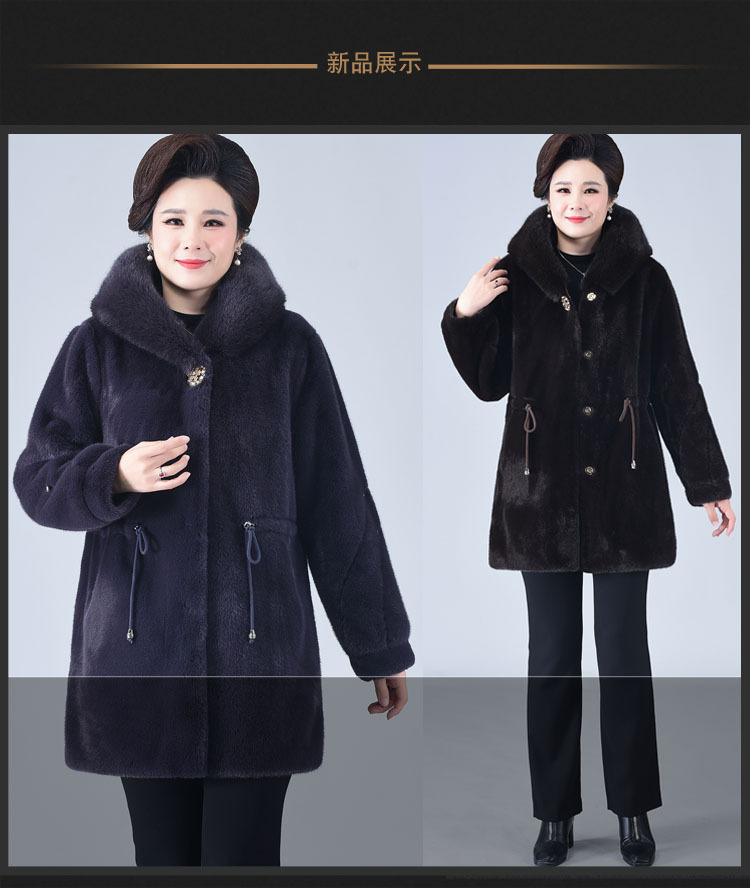 新型ママ秋冬コート高貴毛皮一体コート中高年女装秋冬フード付き200斤