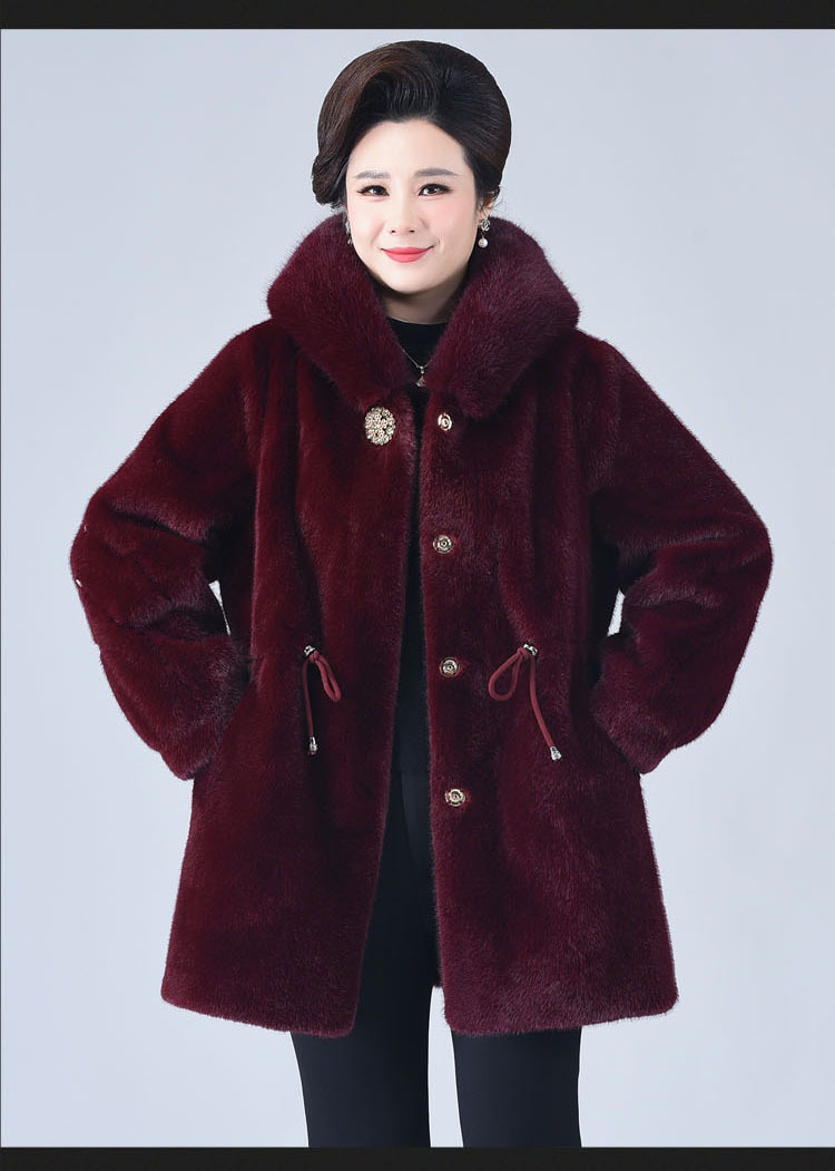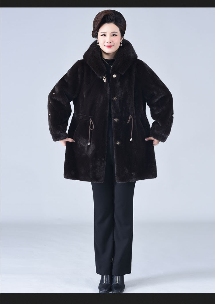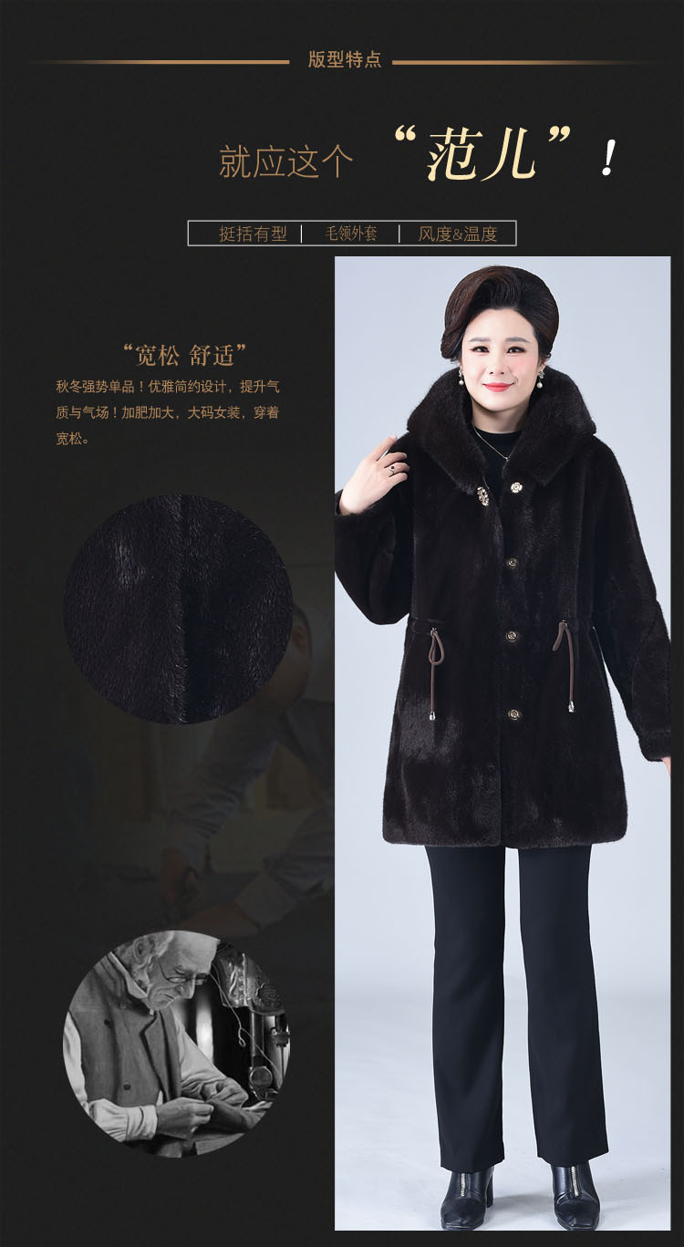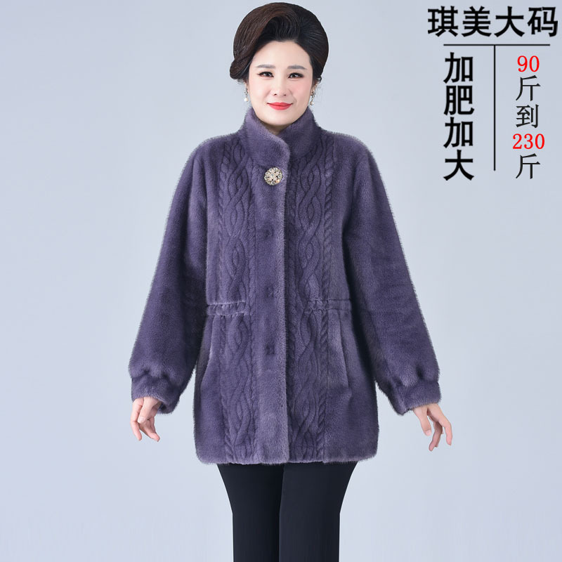 太ったお母さんの冬服の洋風の毛皮の上着の秋冬の毛皮の一体の中高年の女性の気高いゆったりしている大きいサイズの230斤