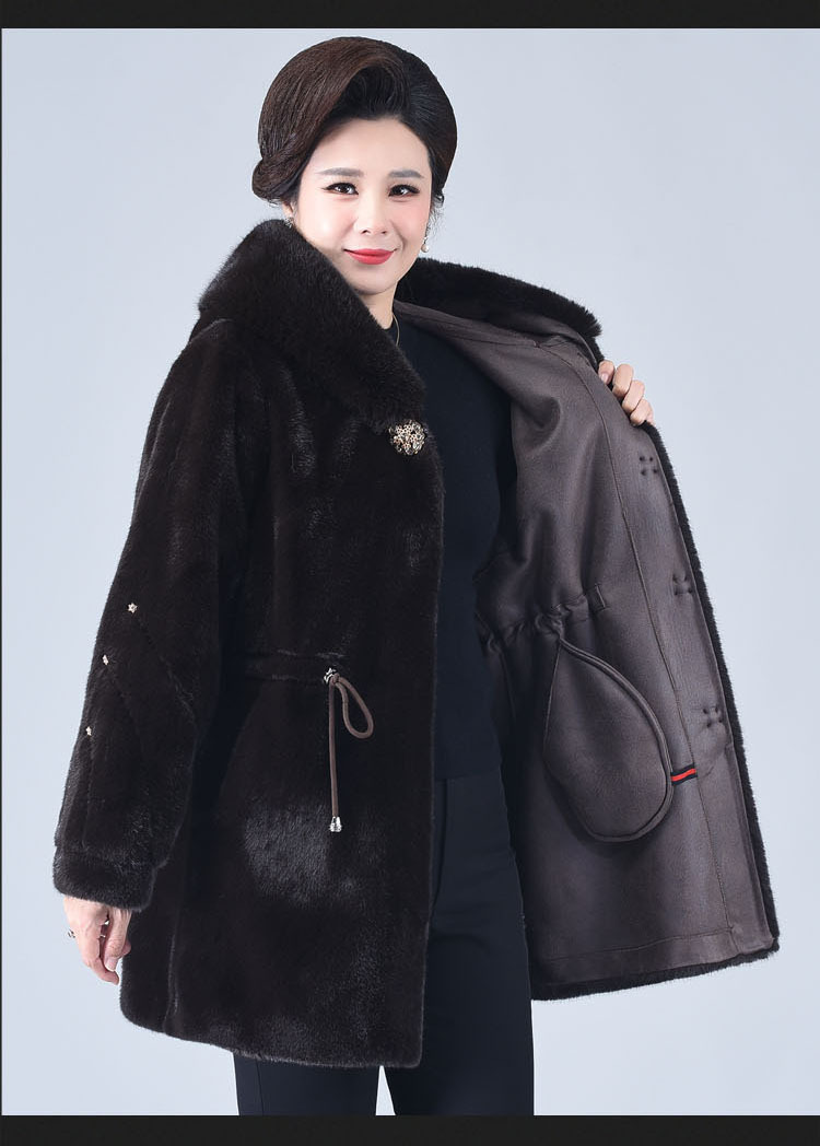 200斤の新型の中長の毛皮の上着の中年の婦人服の欧ミンクの毛のお母さんはミンクの皮のコートを着て冬の服を厚くします。