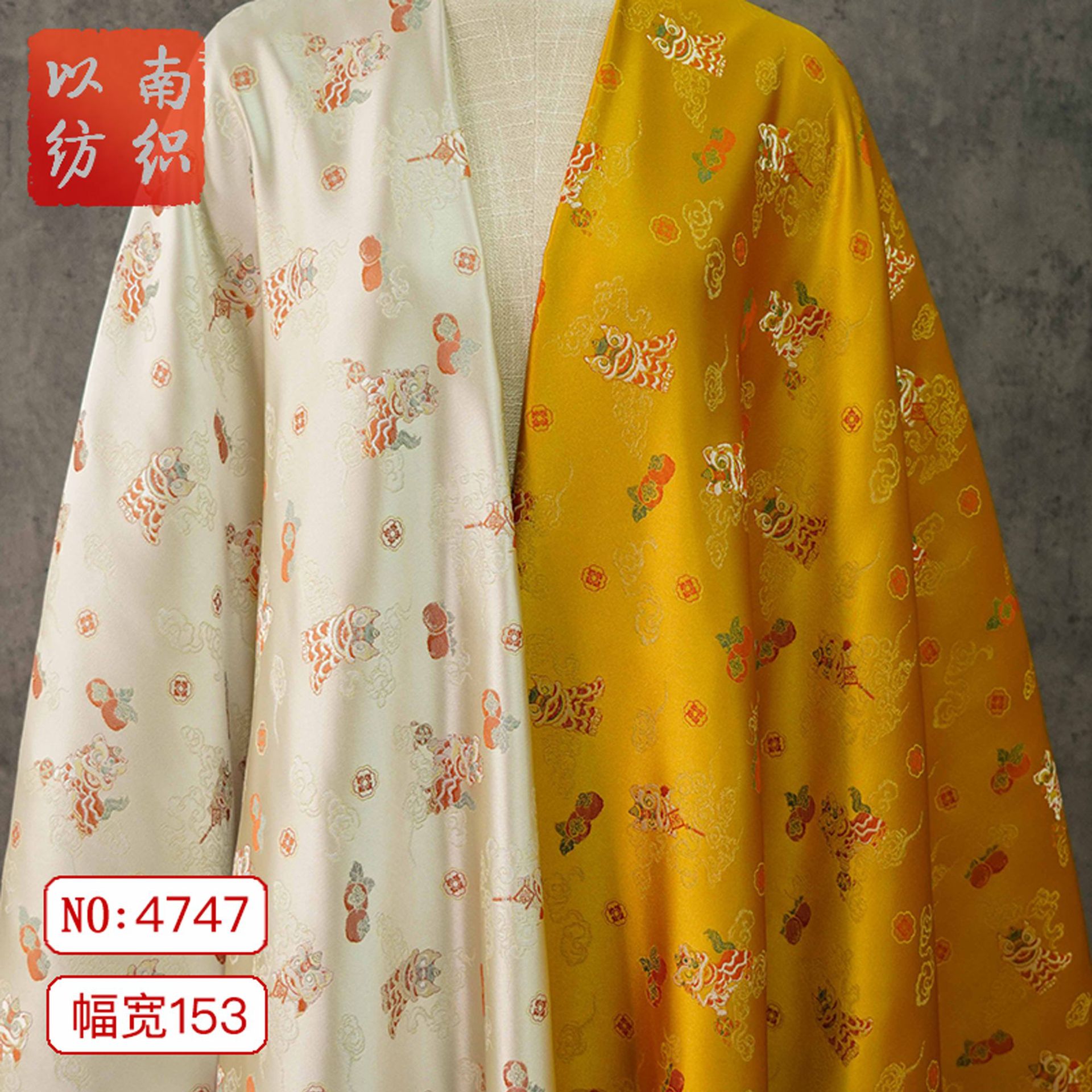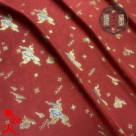 新中式绣花马年大吉刺绣织锦缎提花面料唐装丝滑国风裙子原创设计