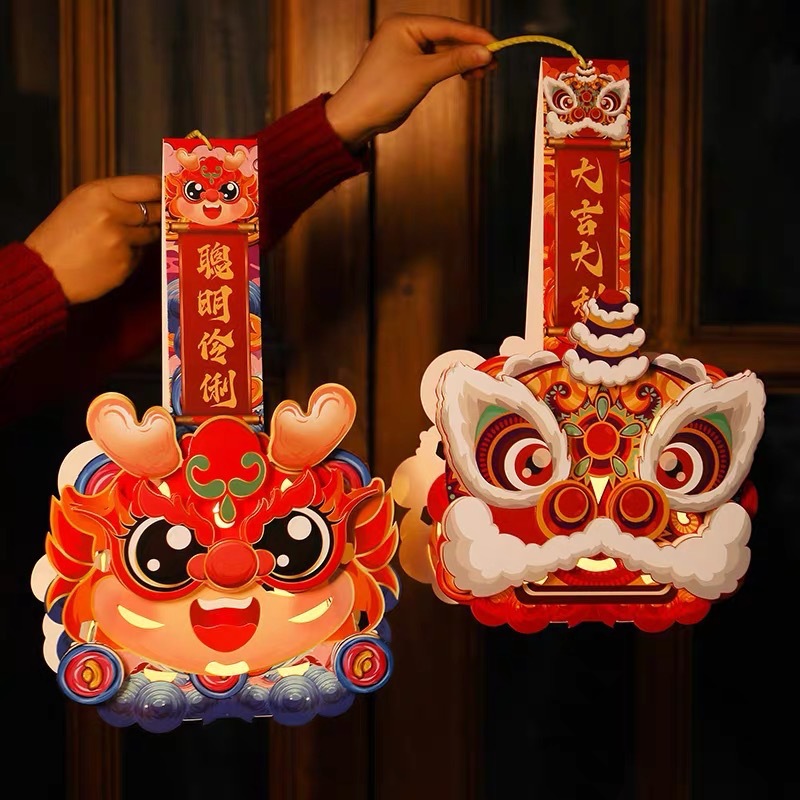 2025蛇年花灯古風掛け手作りdiy材料包子供が中国式のおめでたいライオンの頭提灯を手に入れる