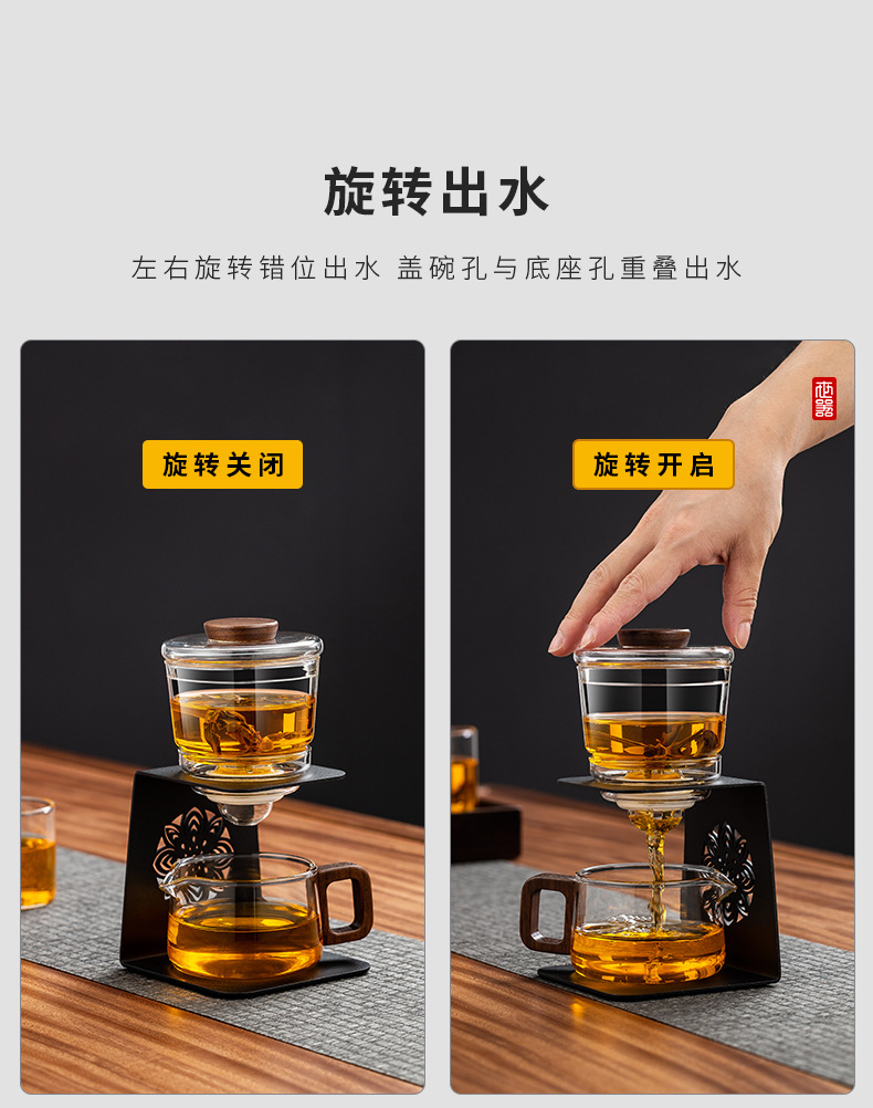 新型茶器、茶水分離、磁気吸着、エレガントなグラス、耐熱フィルター付き茶こし、怠け者向けカンフー茶器