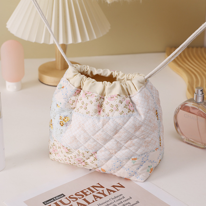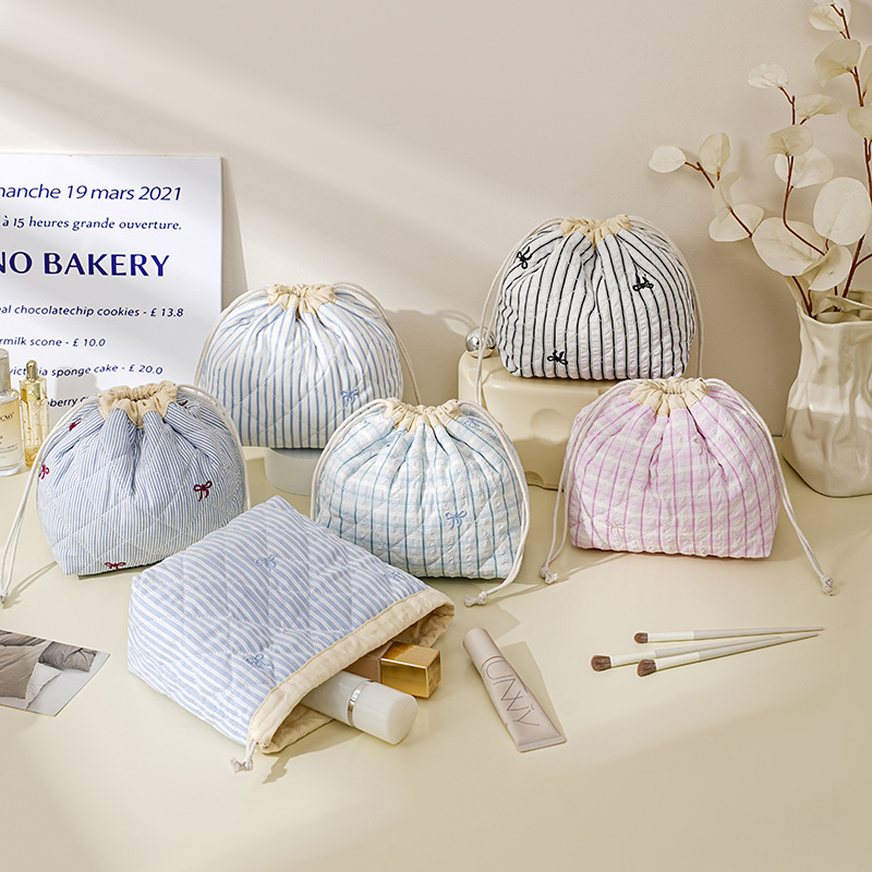 跨境新款高级感绗缝化妆包大容量便携抽绳束口袋旅行洗漱收纳袋