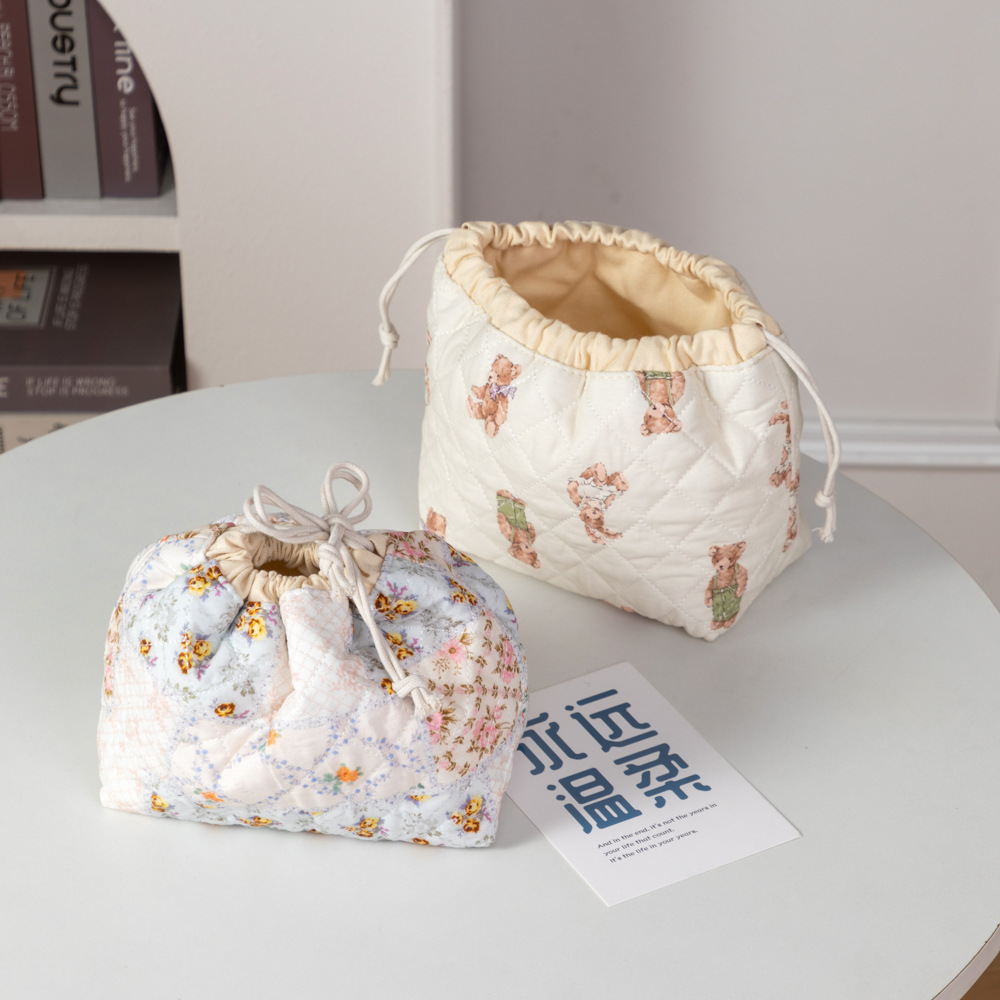 越境秋冬新作熊キルティング化粧バッグ大容量旅行携帯ポケットスキンケア収納袋