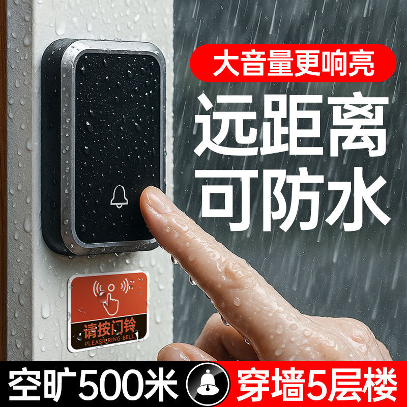 自发电无线门铃开关进门家用不用电池防水超远距离老人智能呼叫器