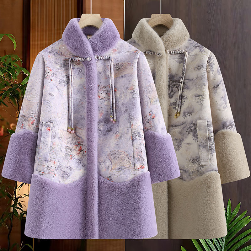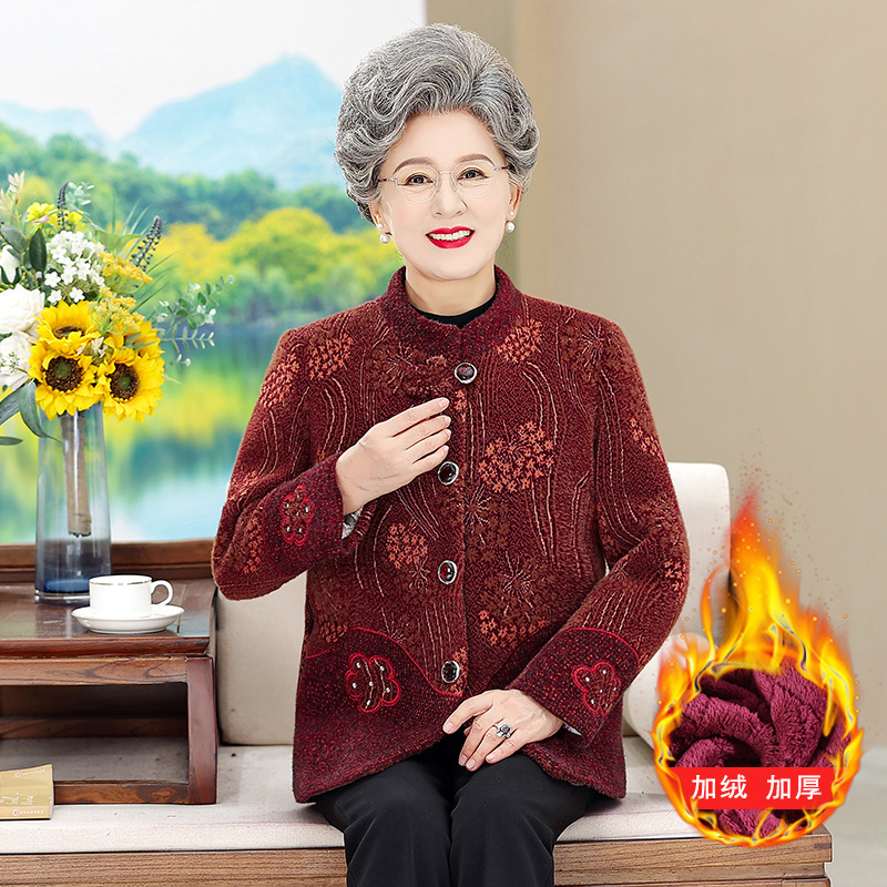 おばあさんの冬服のミンクのベルベットのコートの高齢者の冬の女性のベルベットの厚い服のおばあさんのお母さんの保温上着