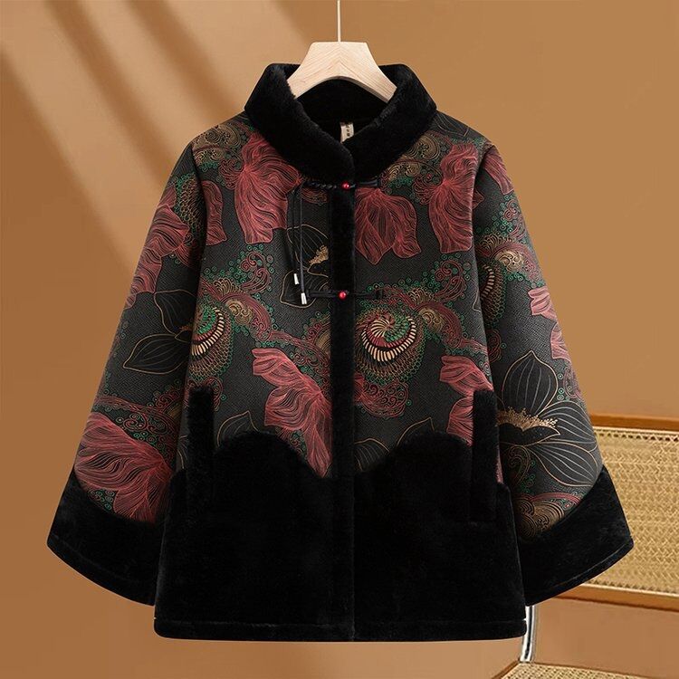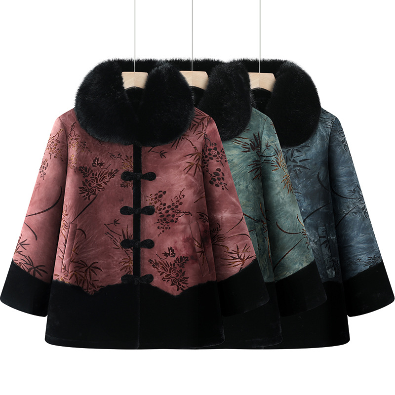 冬の服の新型の大きいサイズのおばあさんは立襟のミンクの上着の短いタイプの中高年の婦人服とベルベットの保温のコートの厚さを詰めます。