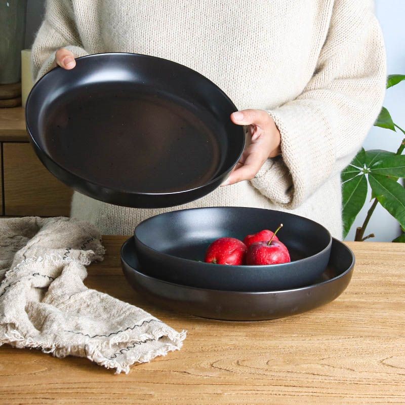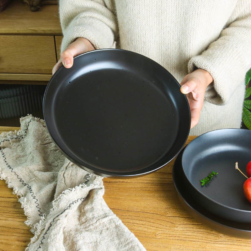 Ins風瑕疵黒百合実用円形陶磁器家庭用厚菜碗日本式スープ碗サラダパスタ皿