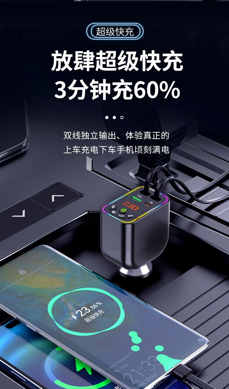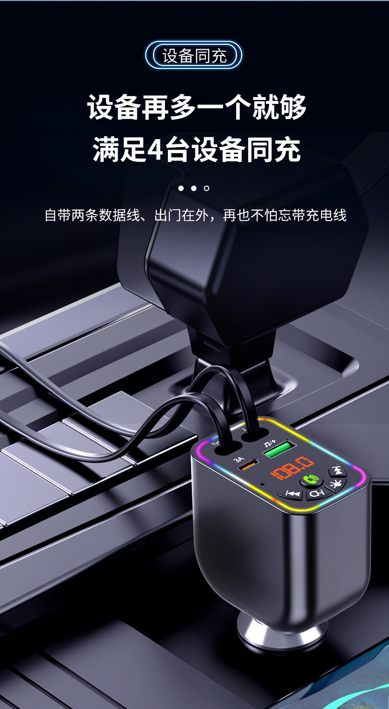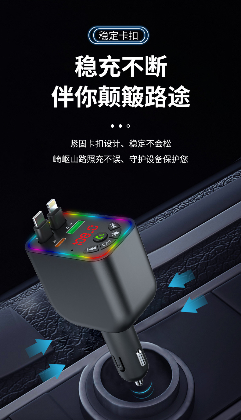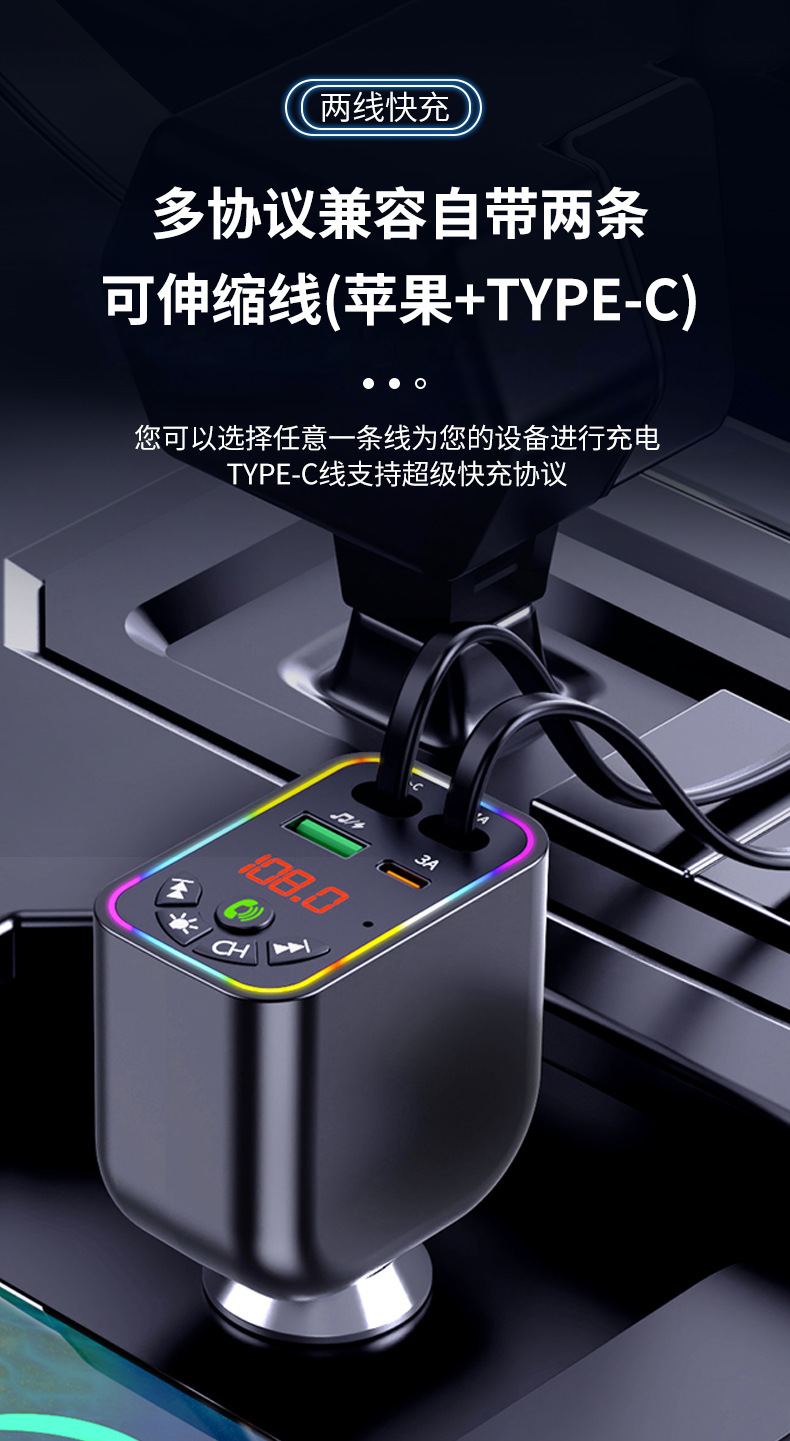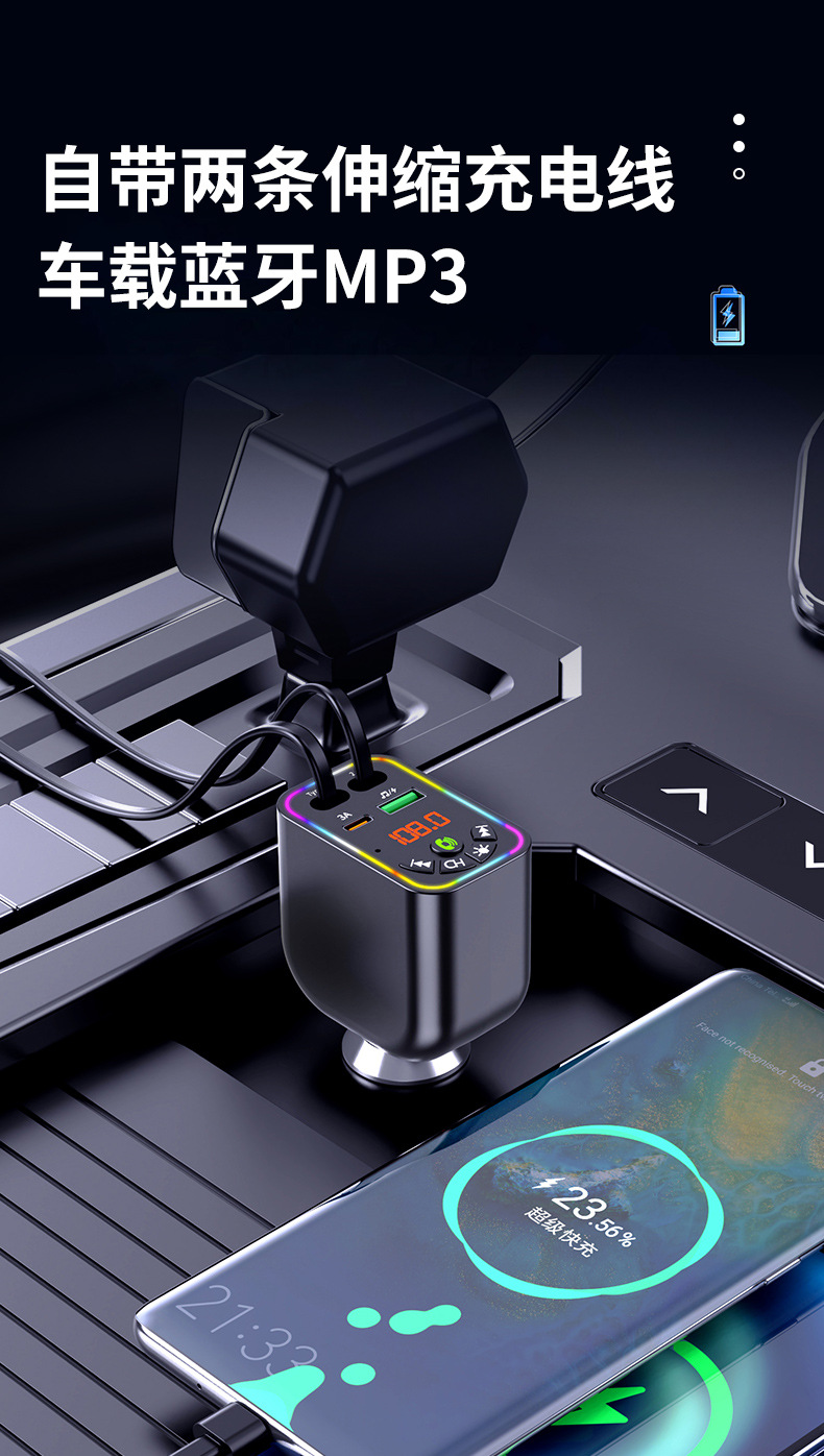 Car MP3 player 高品质汽车蓝牙播放器氛围灯手机快充自带充电线
