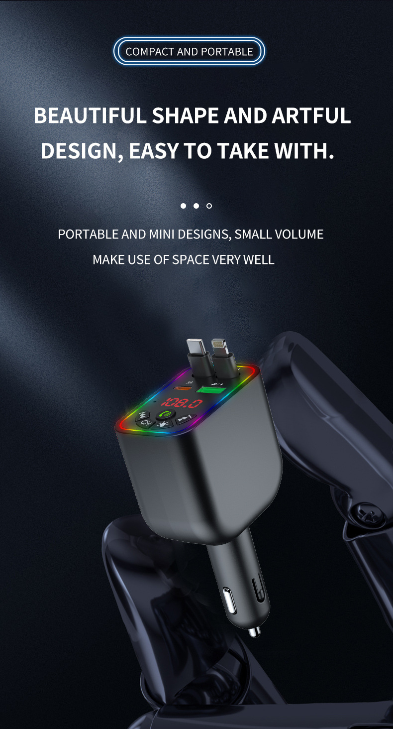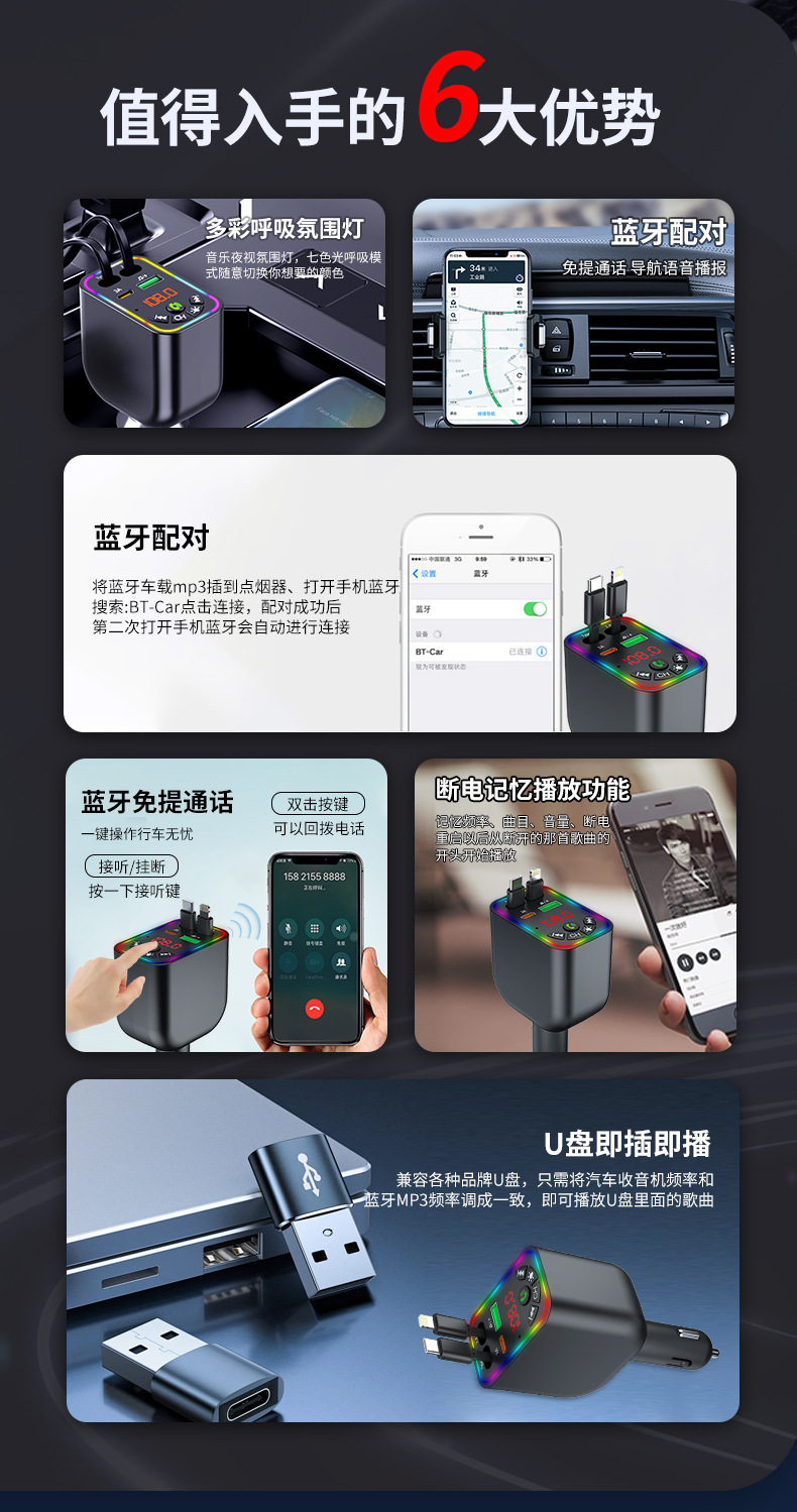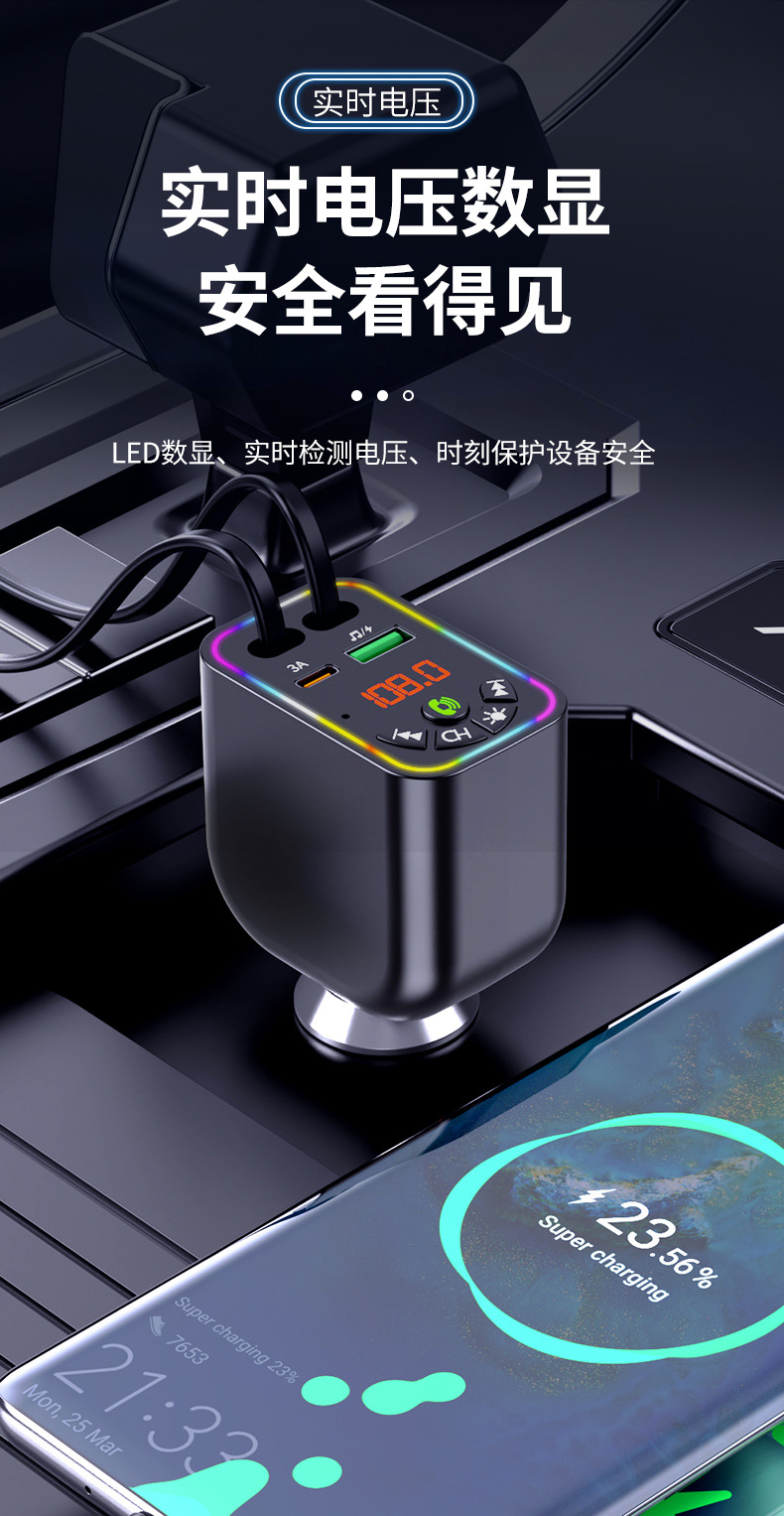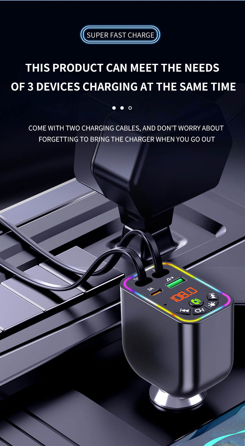 Car MP3 player 高品质汽车蓝牙播放器氛围灯手机快充自带充电线