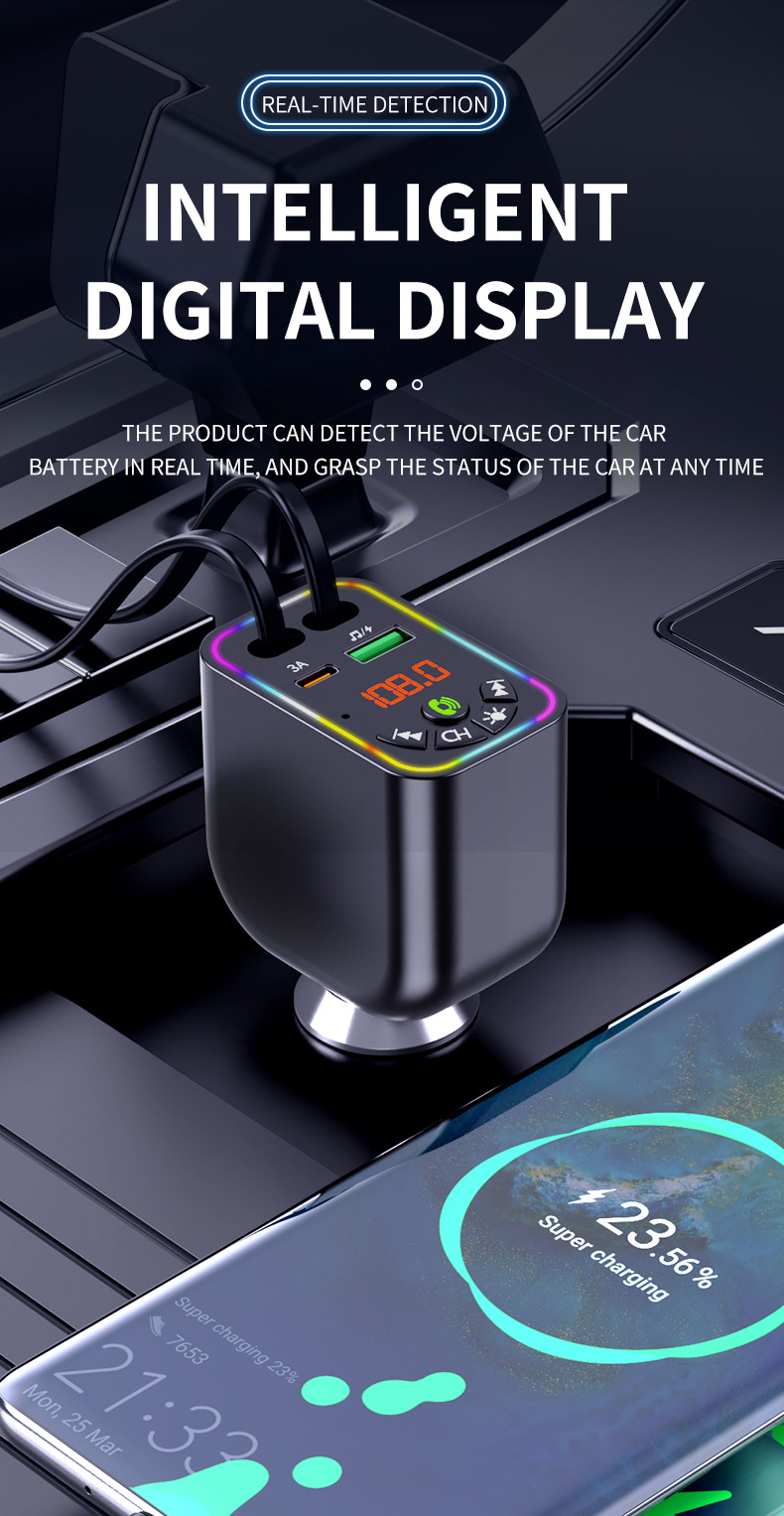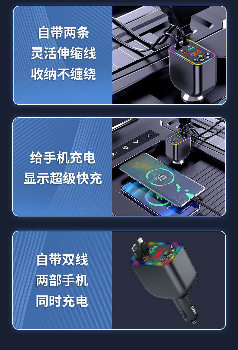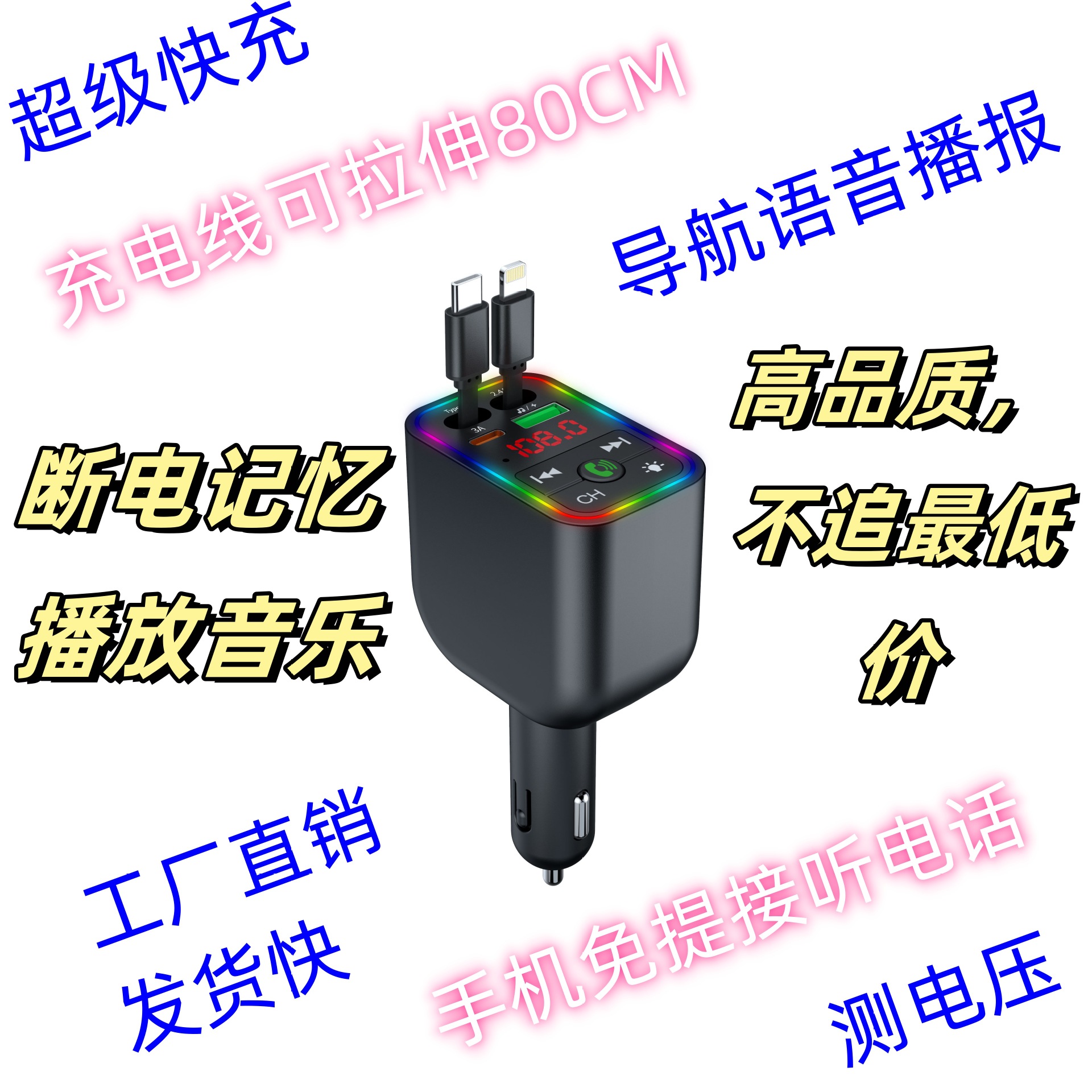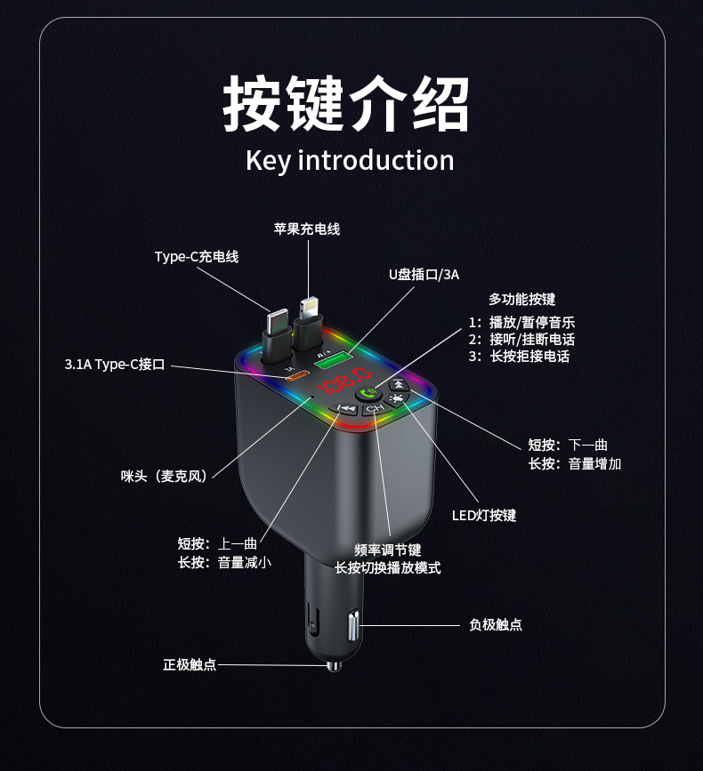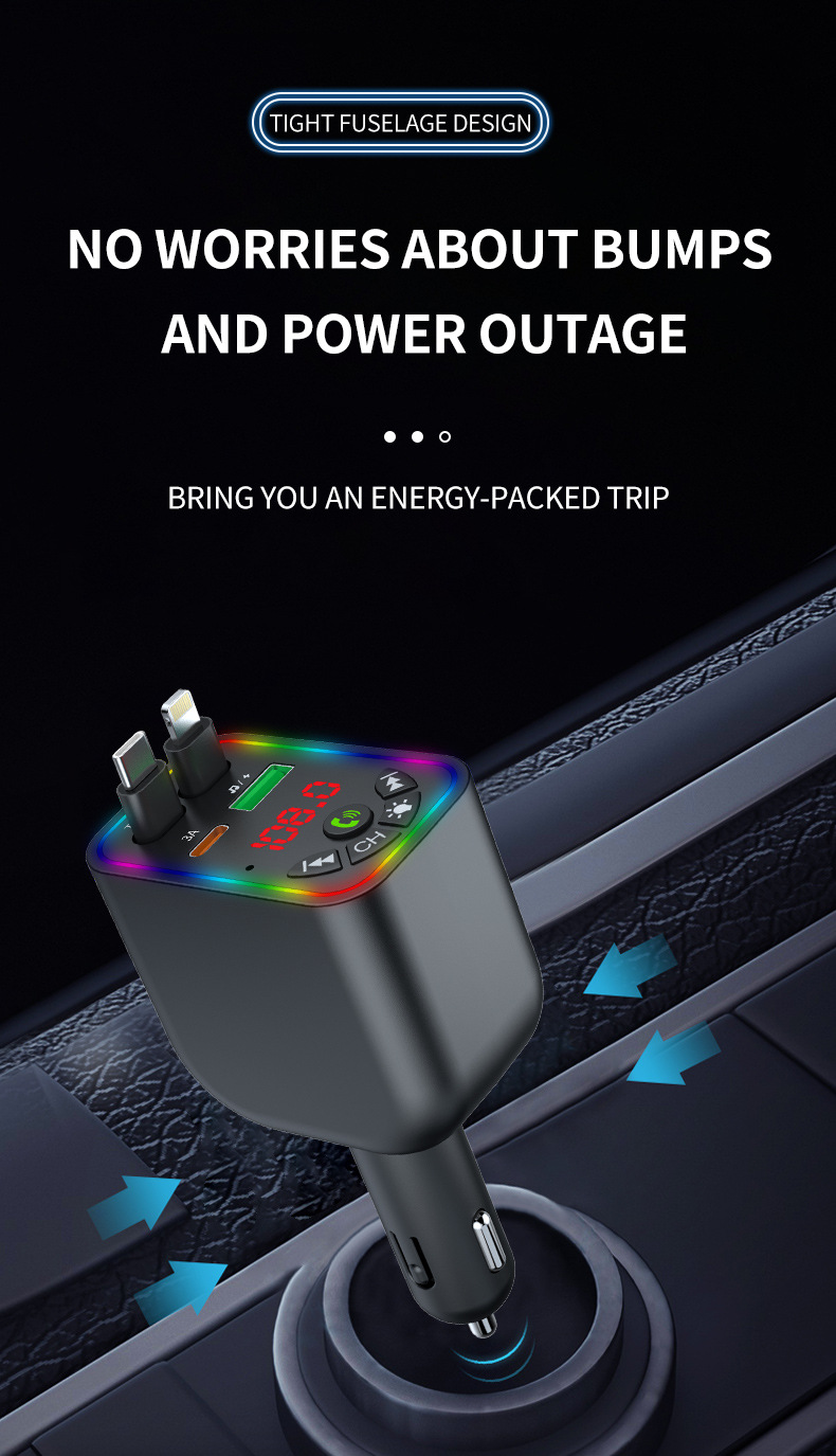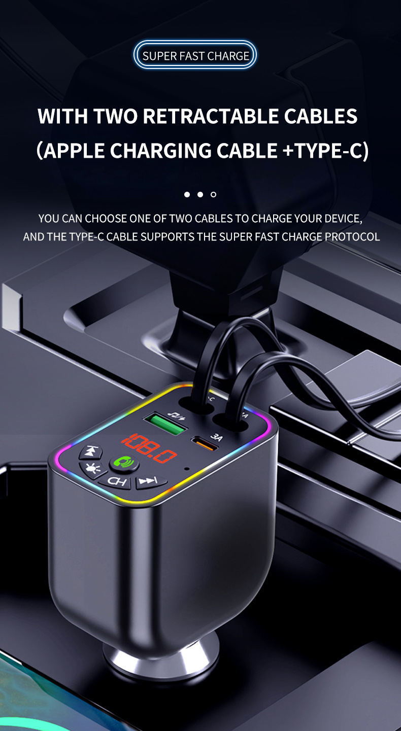 Car MP3 player 高品质汽车蓝牙播放器氛围灯手机快充自带充电线