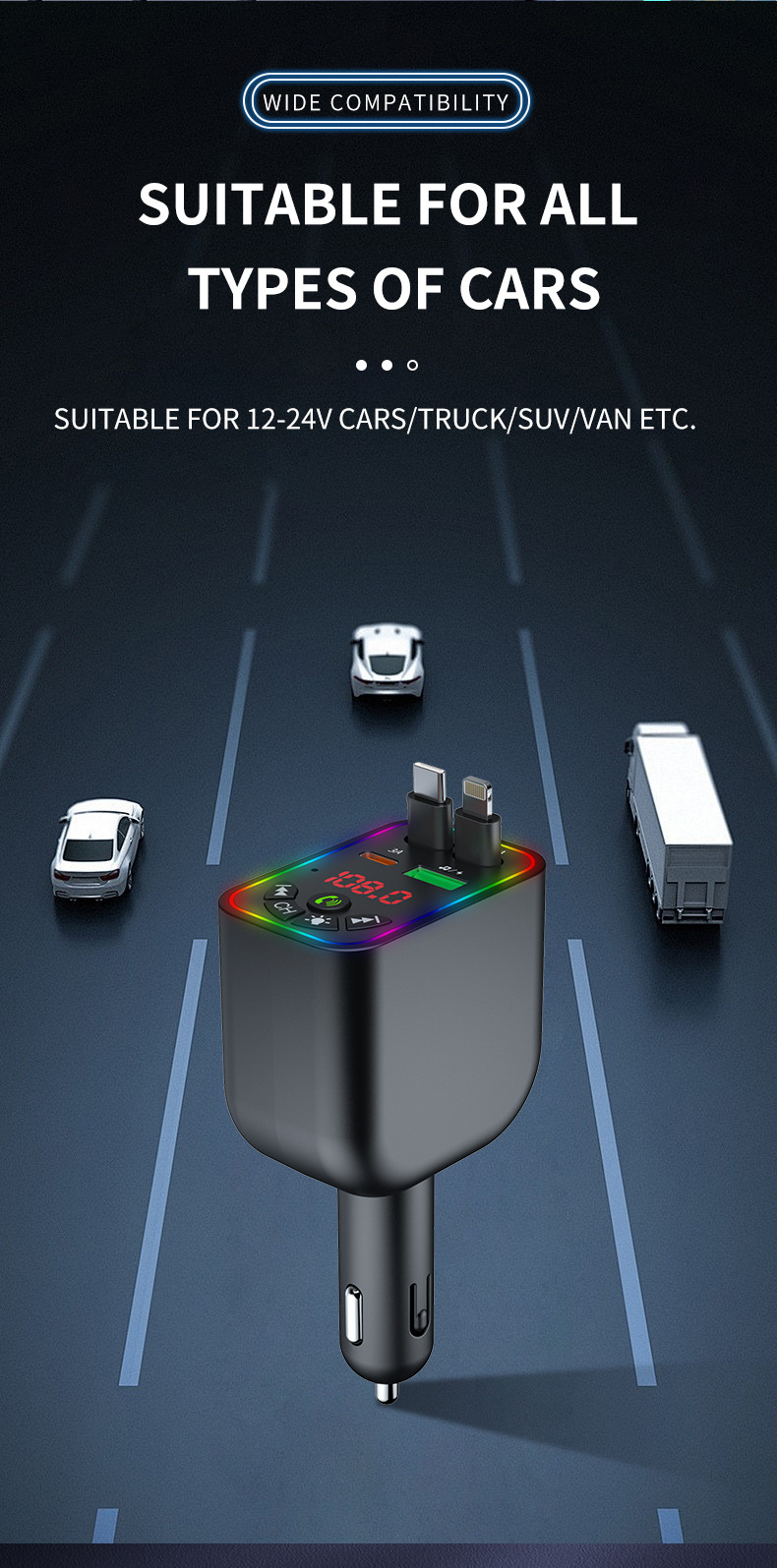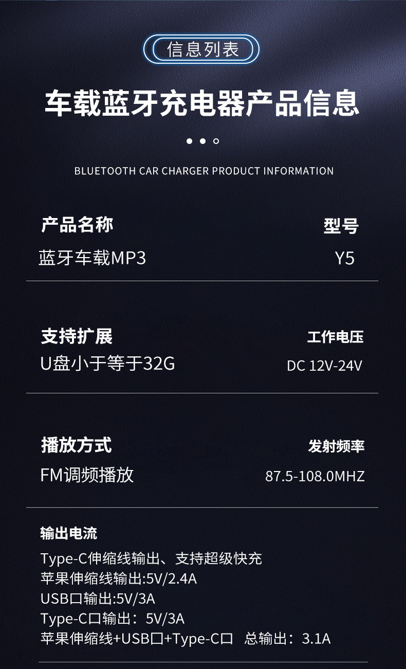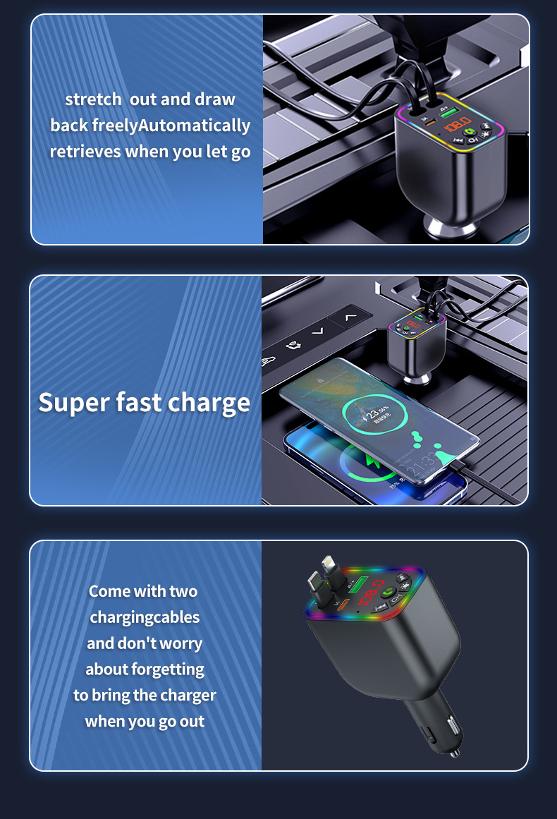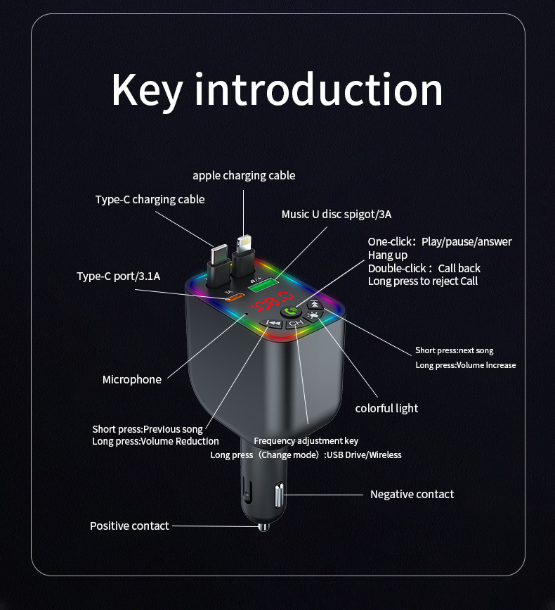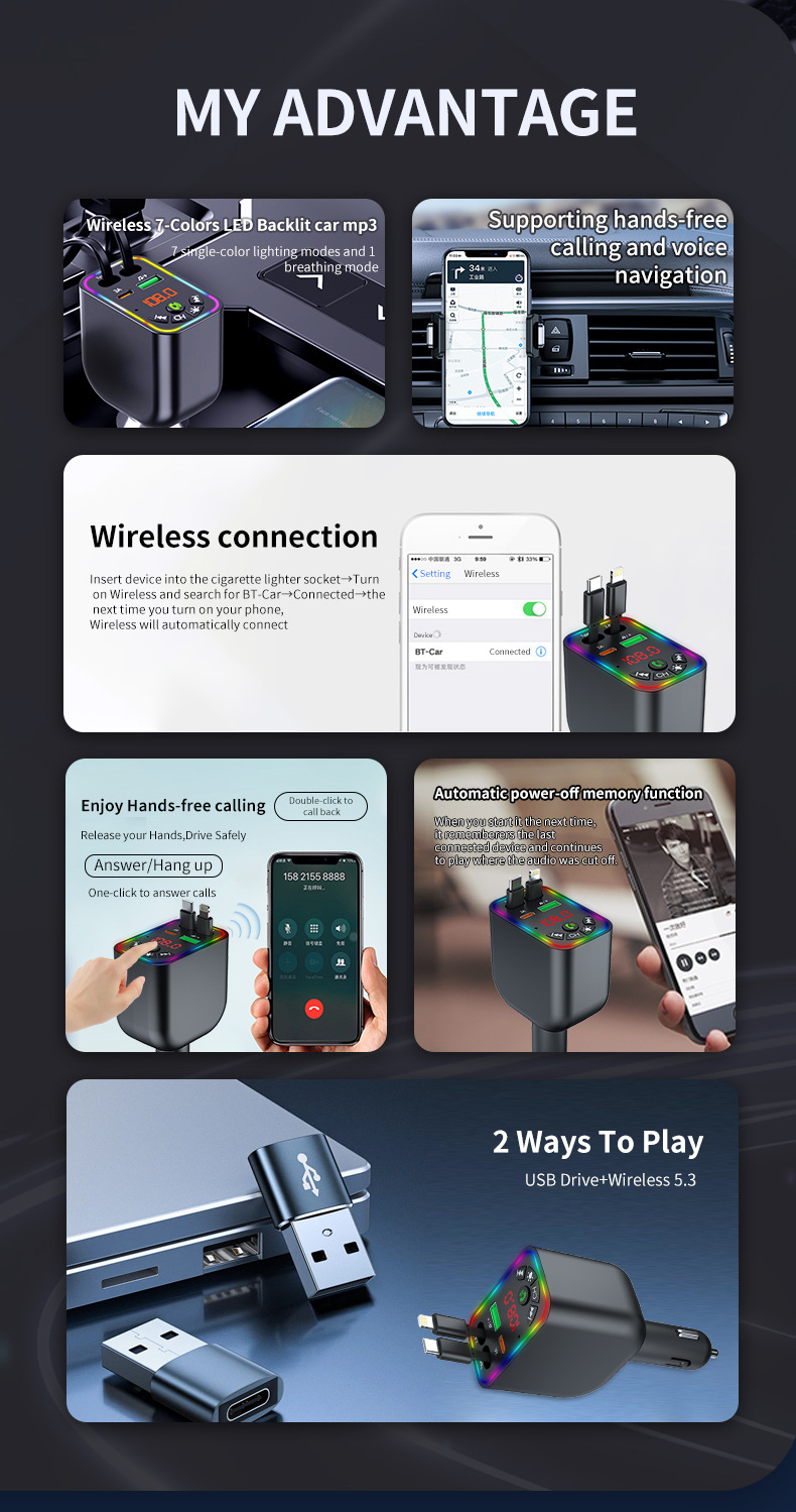 Car MP3 player 高品质汽车蓝牙播放器氛围灯手机快充自带充电线