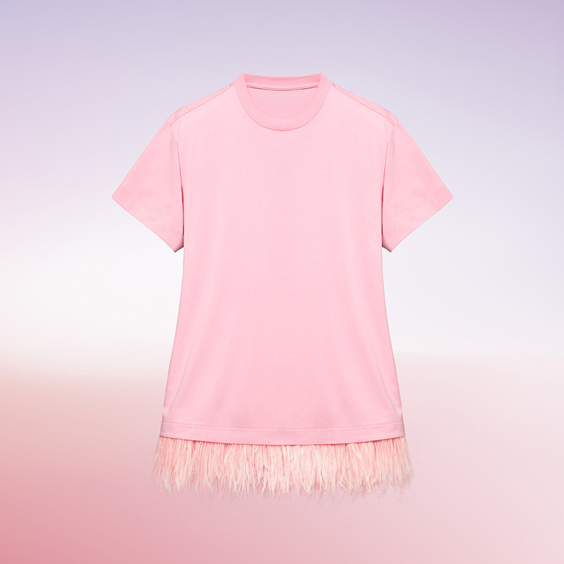【JH-32】2024春夏ロマンパウダーダチョウ毛装饰ワンピース半袖tシャツ
