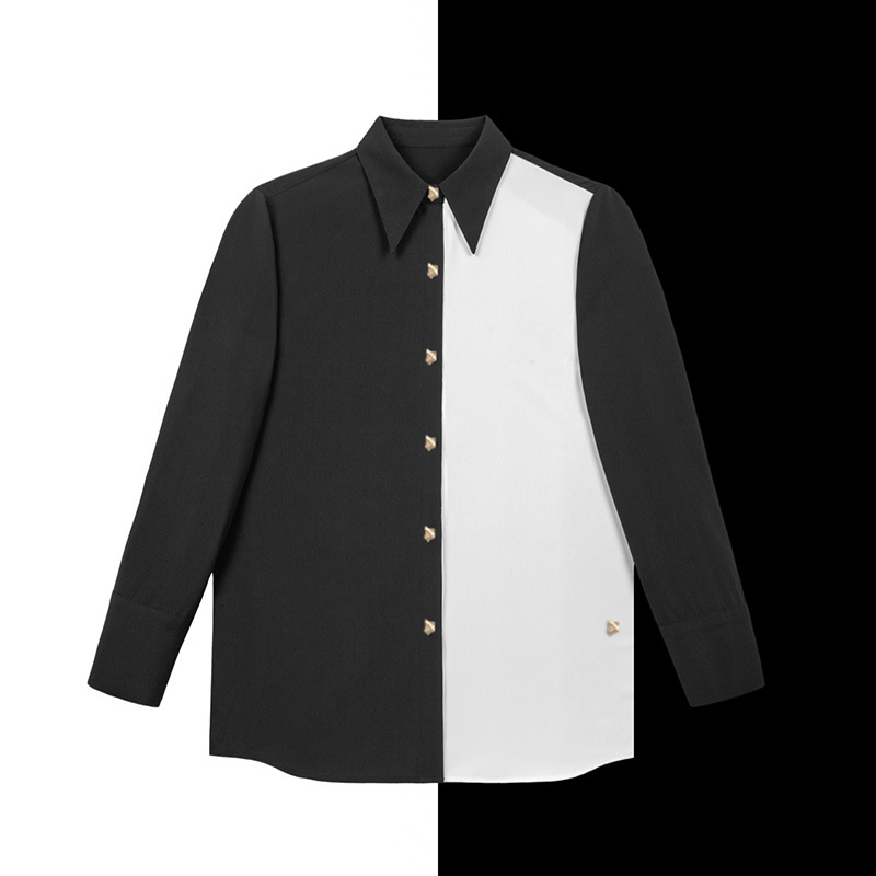 【JH-26】黒金の優雅な高級品の色合わせが多い女性用シャツ