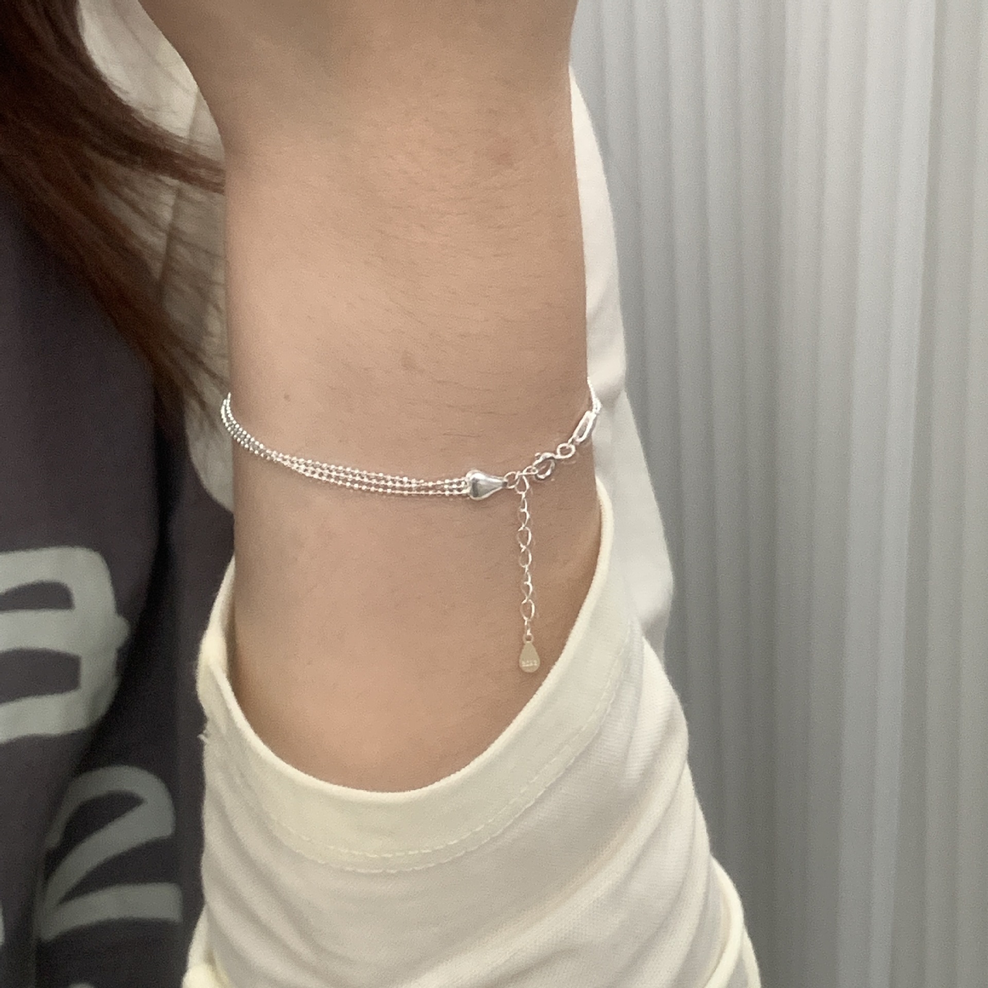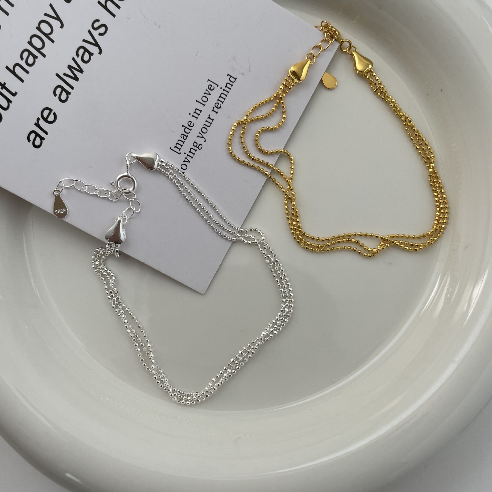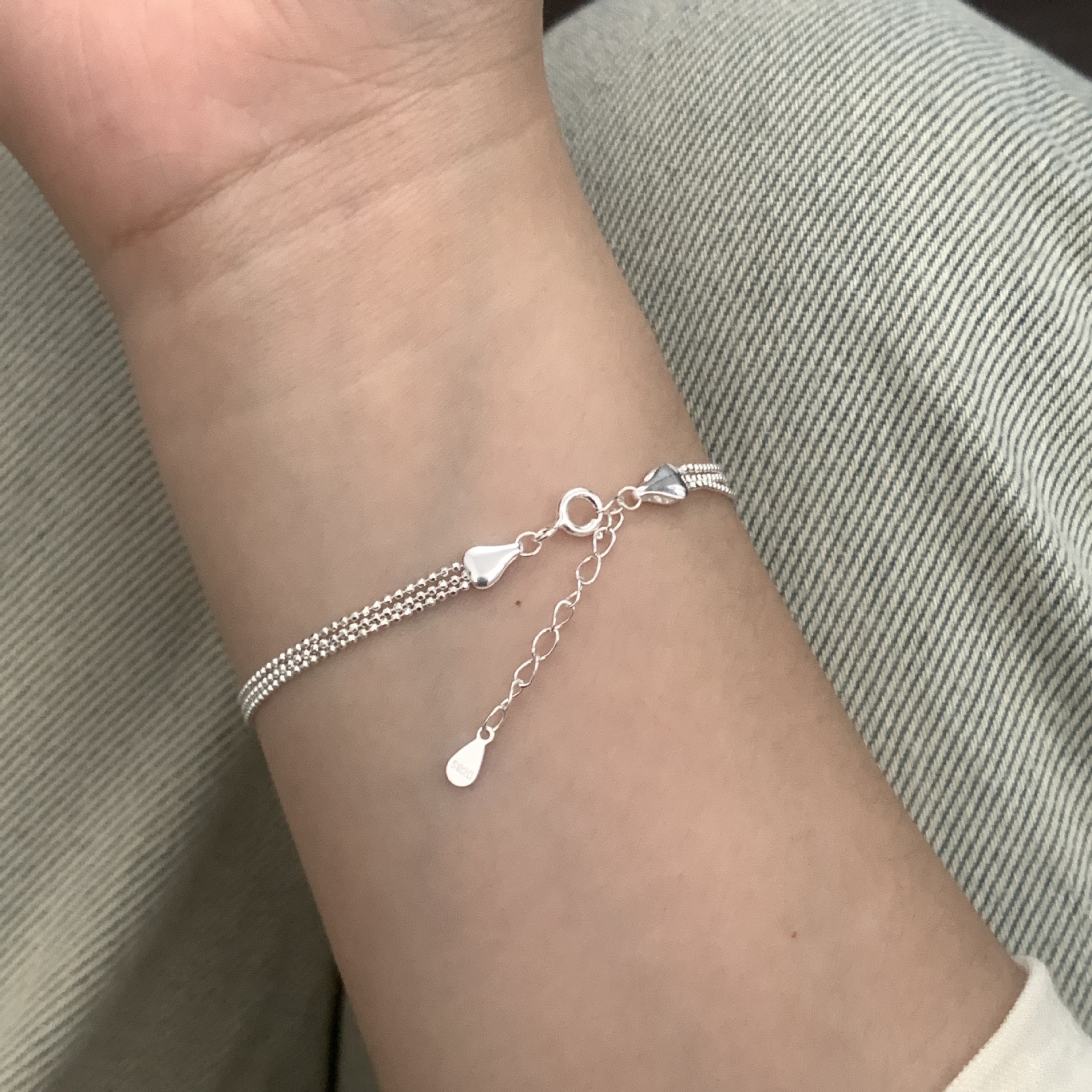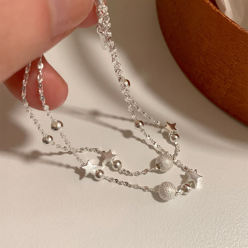 新製品 S925 スターリングシルバーシンプルなイン二層スターブレスレット女性のためのライト高級ニッチつや消しラウンドビーズハイエンドハンドジュエリー