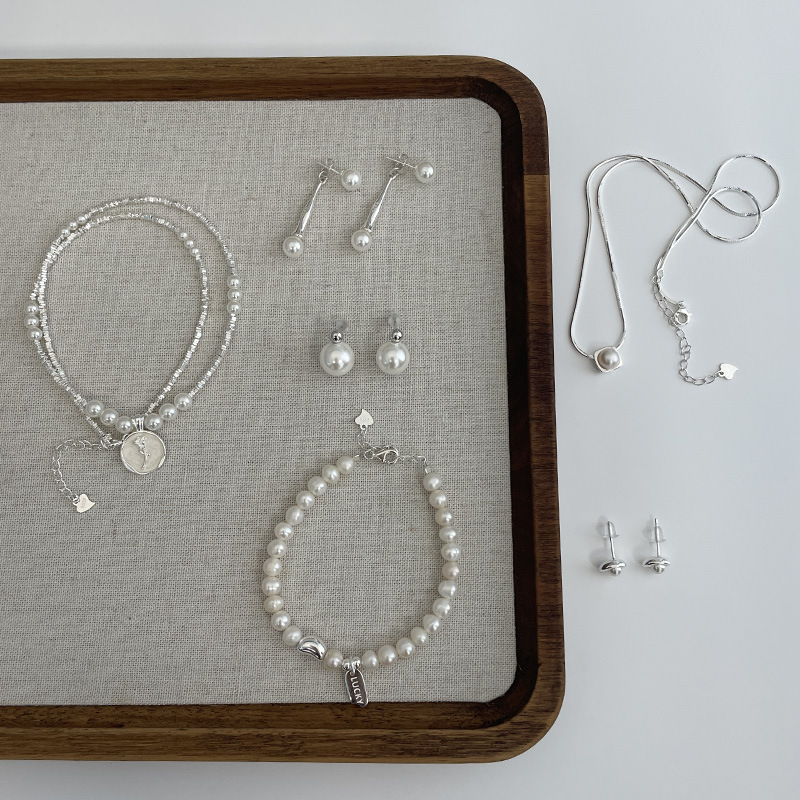 イナ韓国東大門耳飾りS925純銀幸運豆真珠ブレスレット女性バラ釉薬ネックレスセット