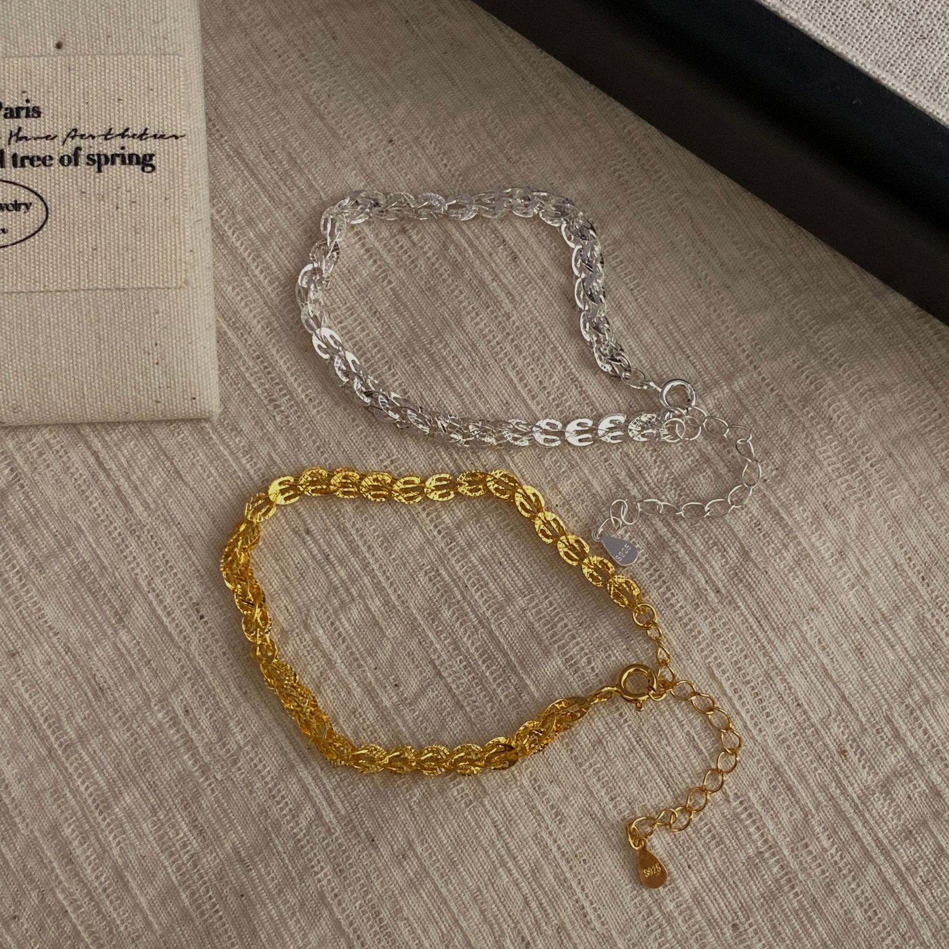 サイナS925純銀韓国版小衆手作りツイストブレスレット女性ファッションシンプルで甘いアクセサリー