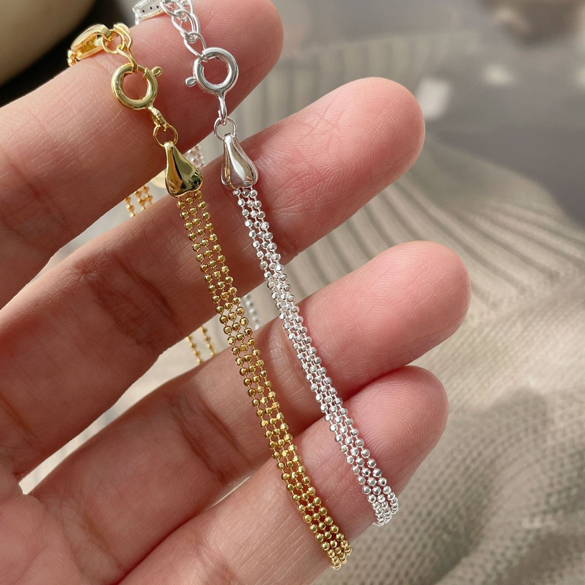 Saiyna 韓国 S925 スターリングシルバー三層スネークボーンビーズブレスレット女性のためのシンプルなハンドジュエリーシルバー卸売